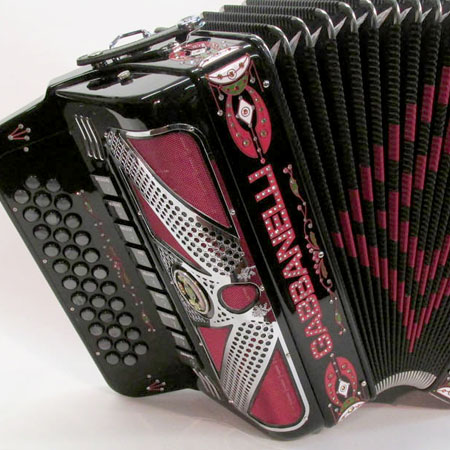 Modelo 900- 34 Botones con 9 registros y 4 voces Musette. Los bajos están disponibles bajo pedido especial y por un costo adicional.