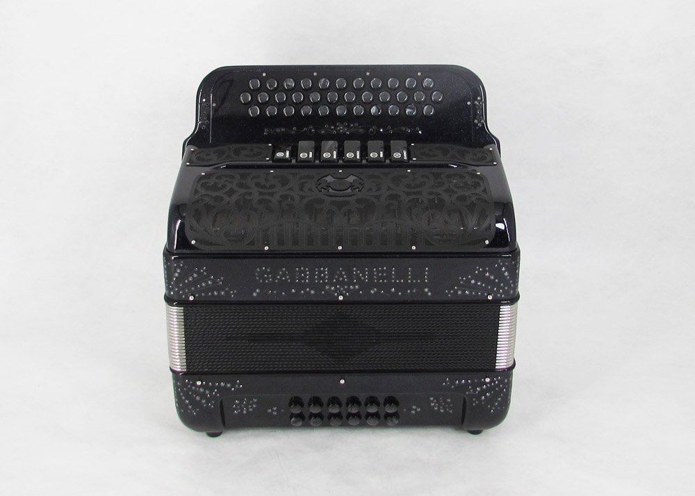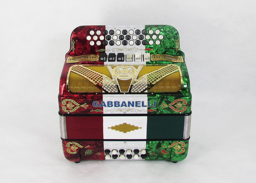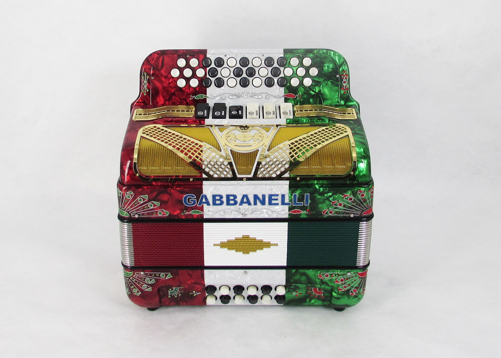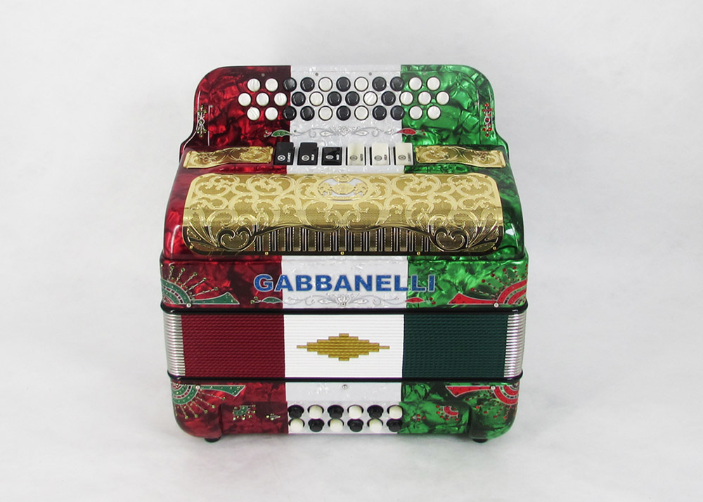Modelo 400- 34 Botones – 5 registros de sonido y tamaño Original. Los bajos están disponibles bajo pedido especial y por un costo adicional.