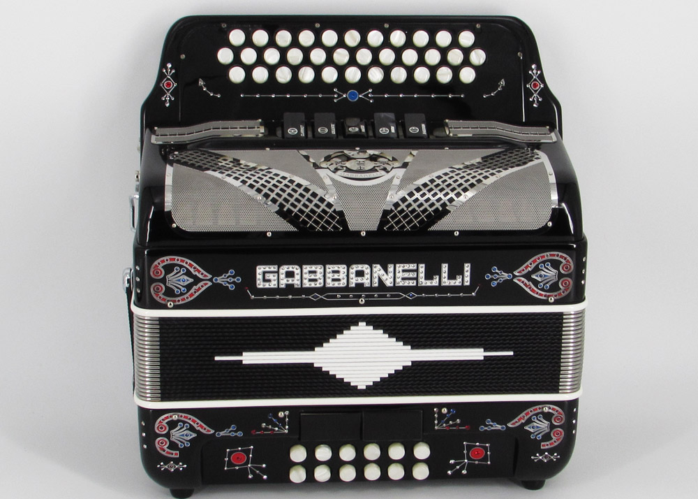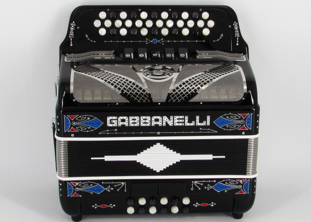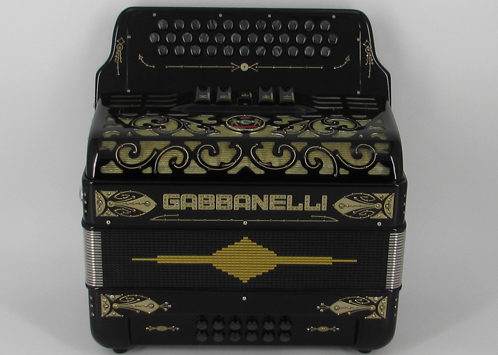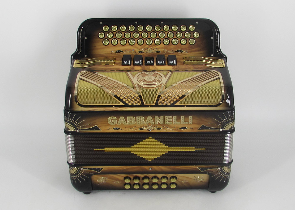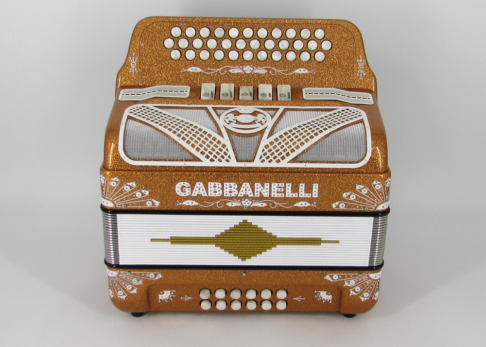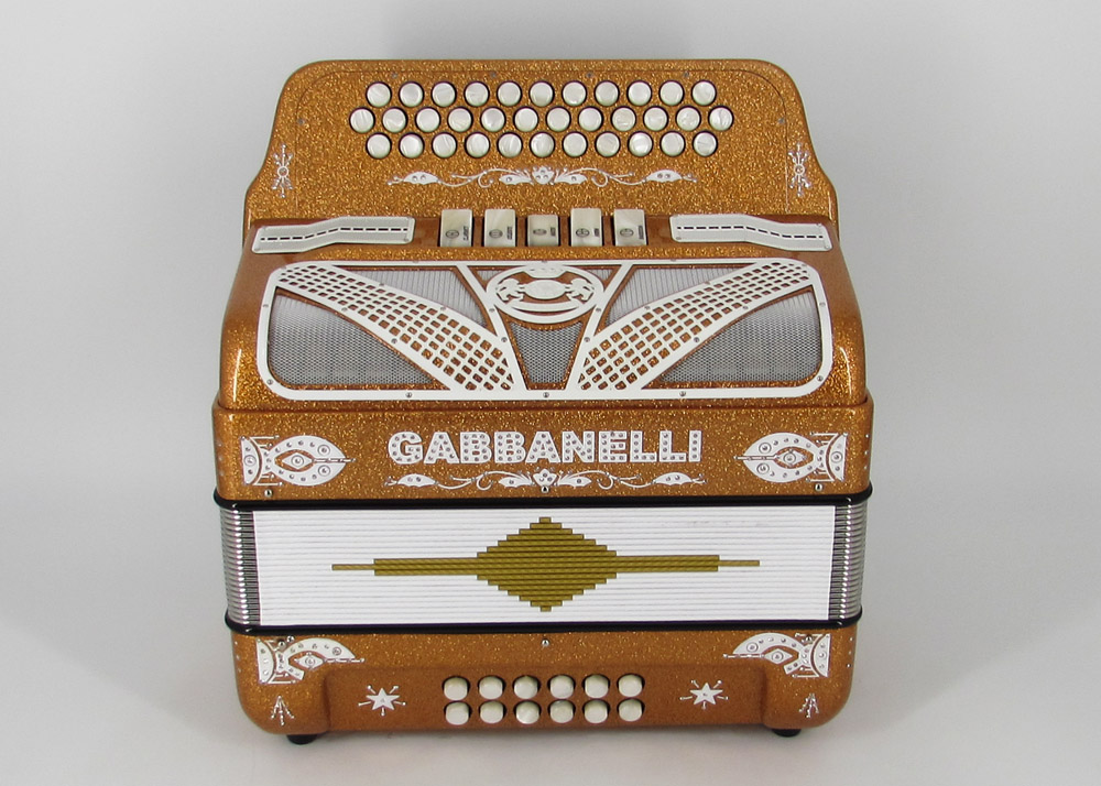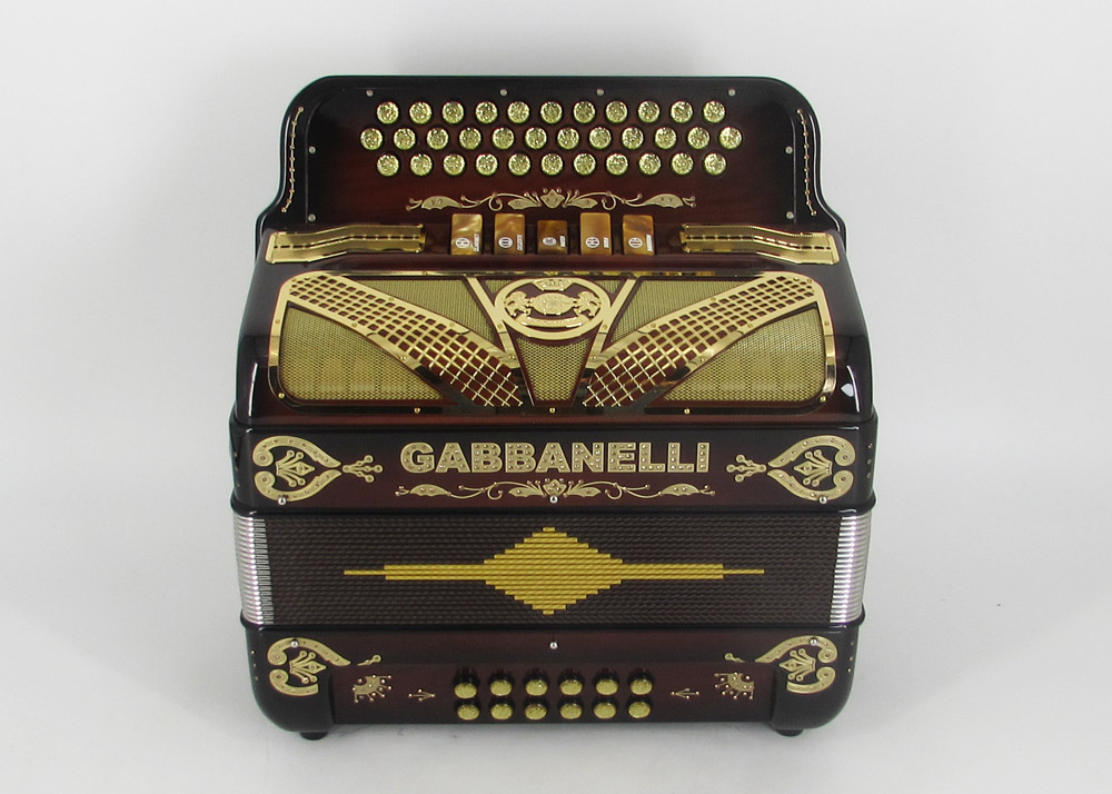 Model 400- 34 Buttons – 5 sound registers, Original size. Bass reed blocks are available upon special request and surcharge.