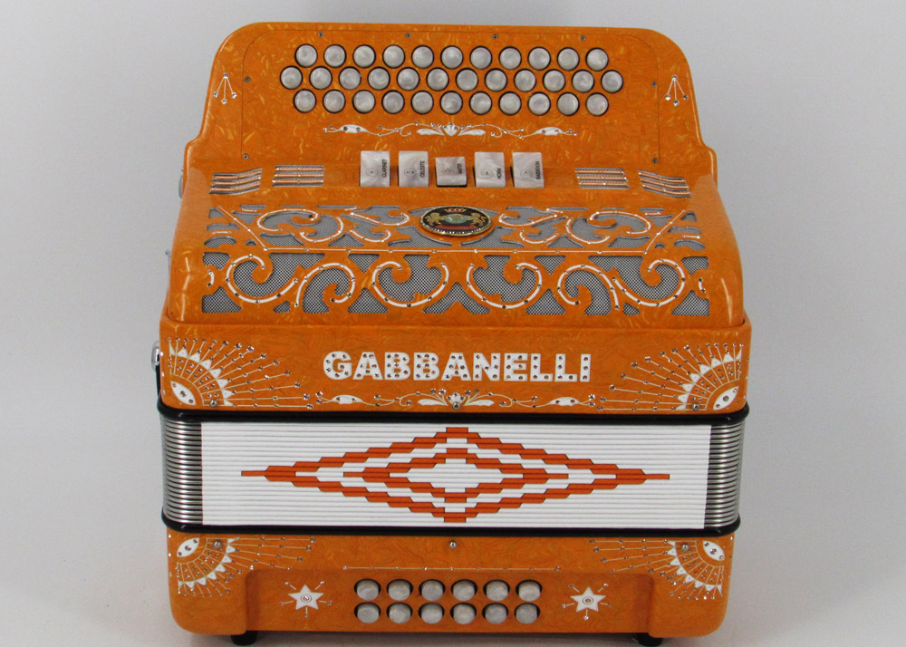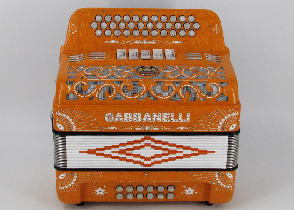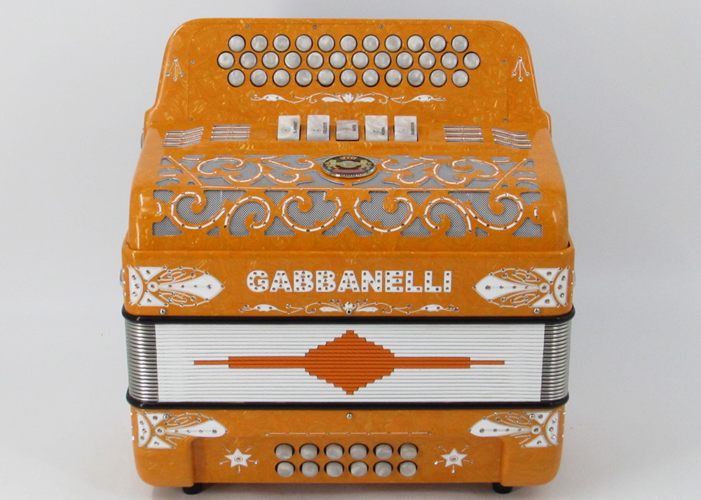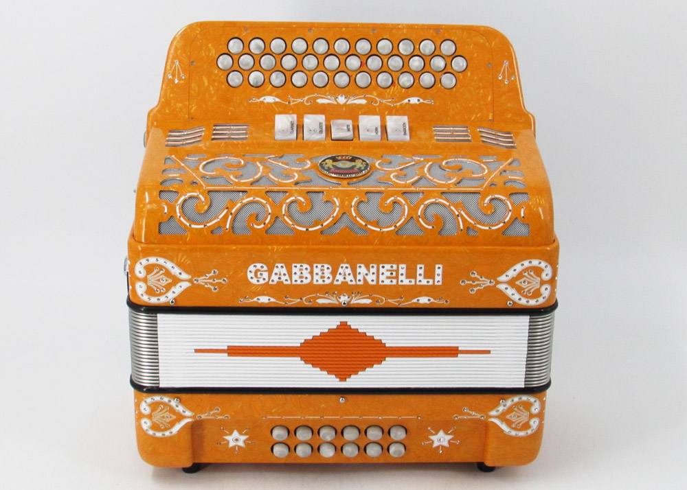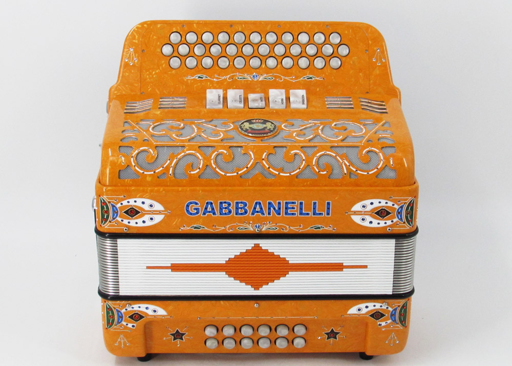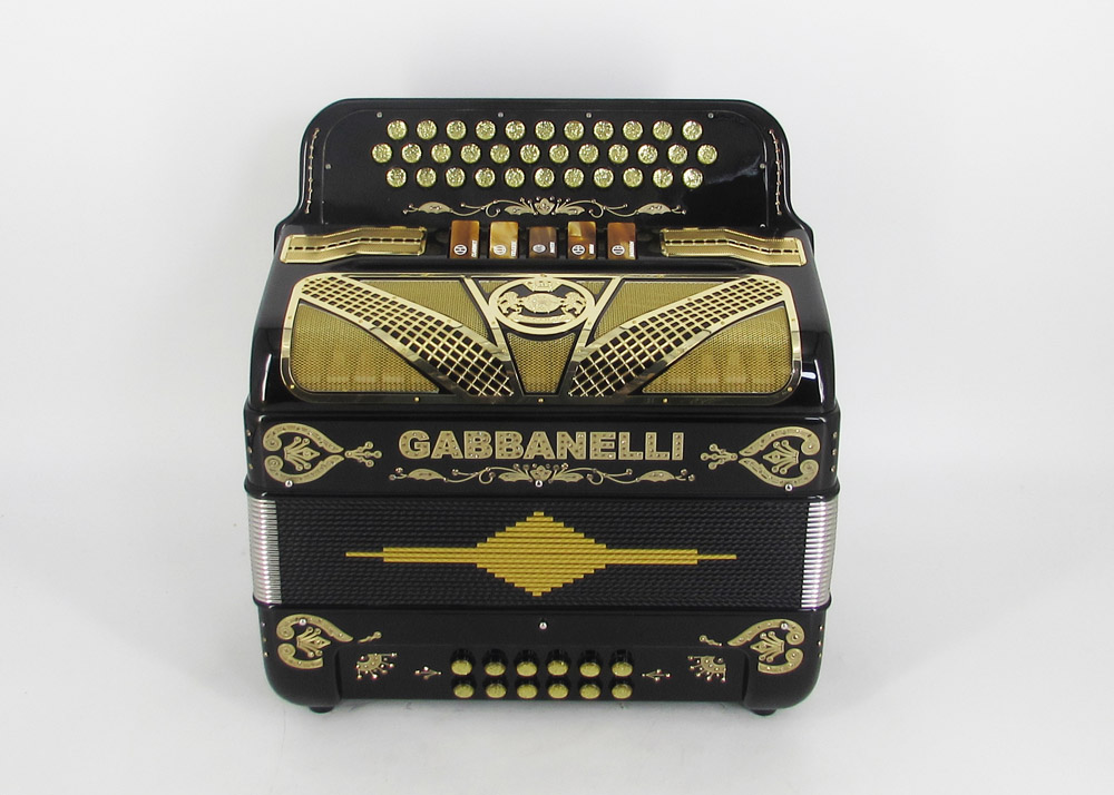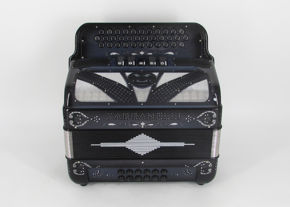 Model 400- 34 Buttons – 5 sound registers, Original size. Bass reed blocks are available upon special request and surcharge.
