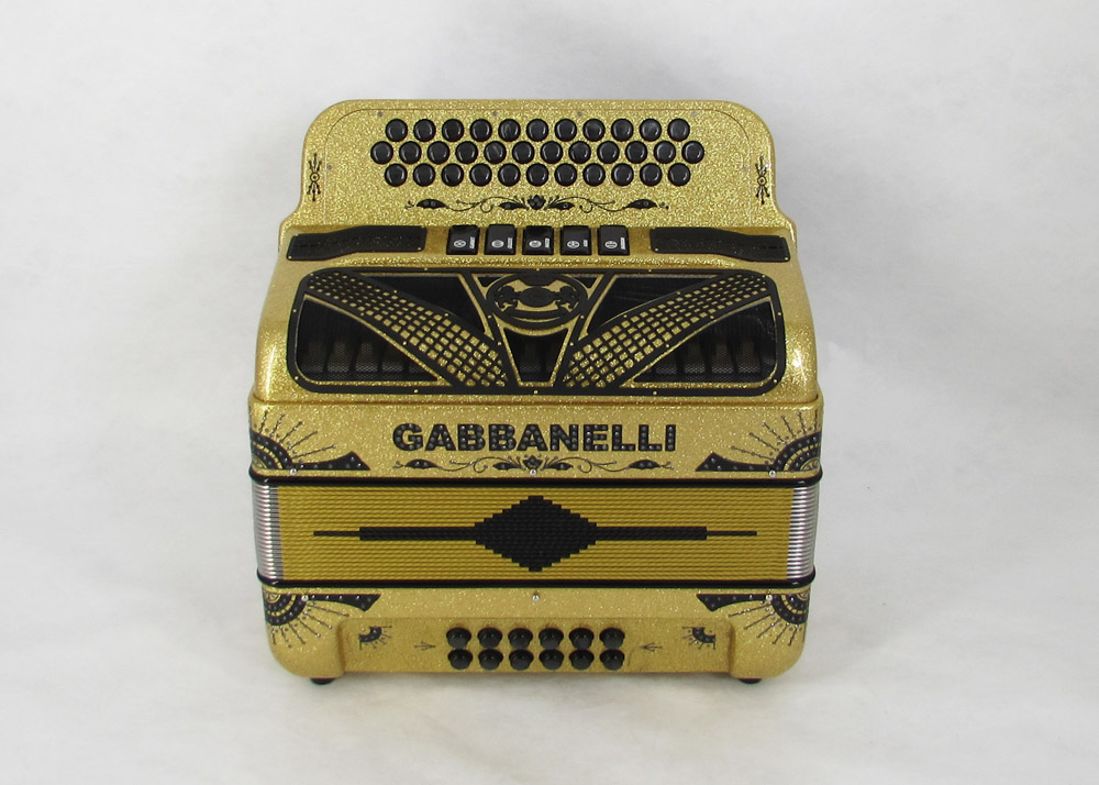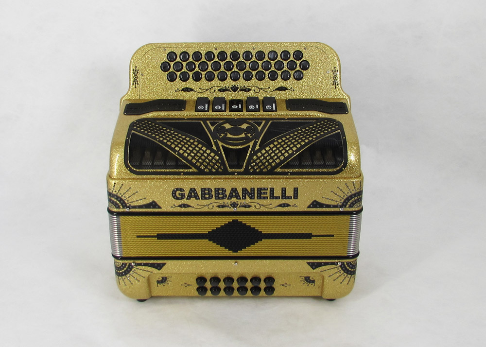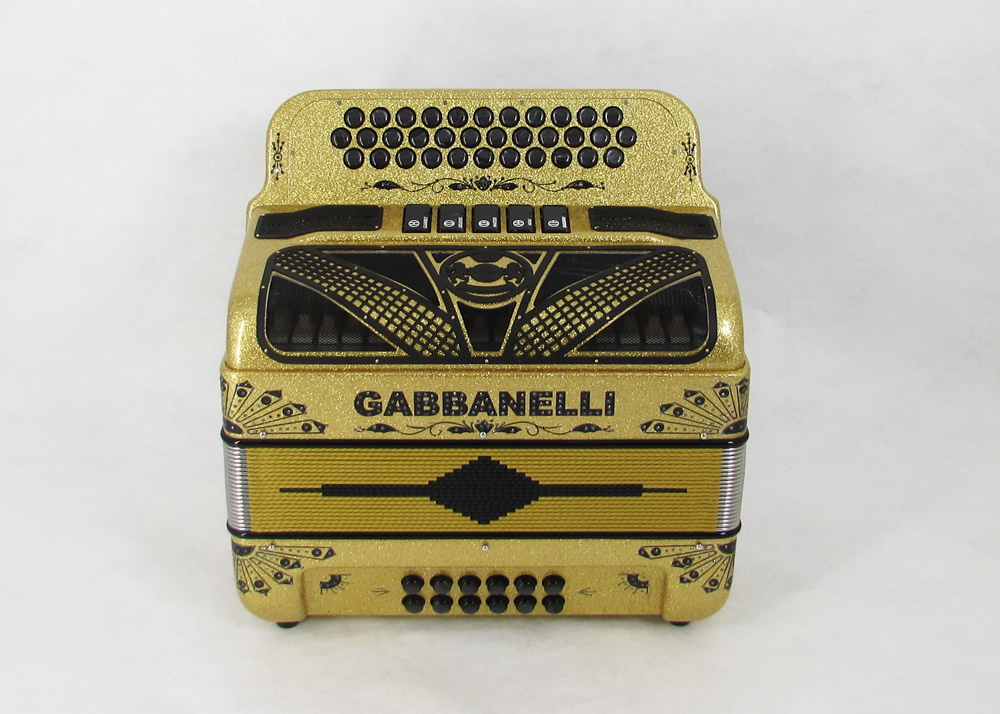 Model 400- 34 Buttons – 5 sound registers, Original size. Bass reed blocks are available upon special request and surcharge.