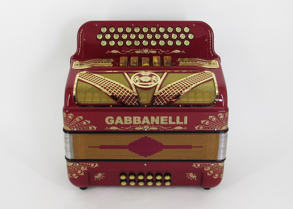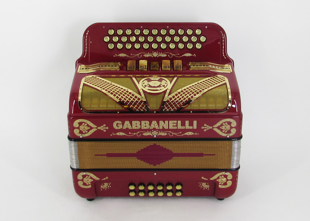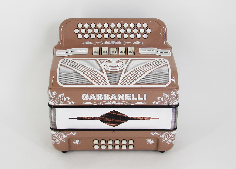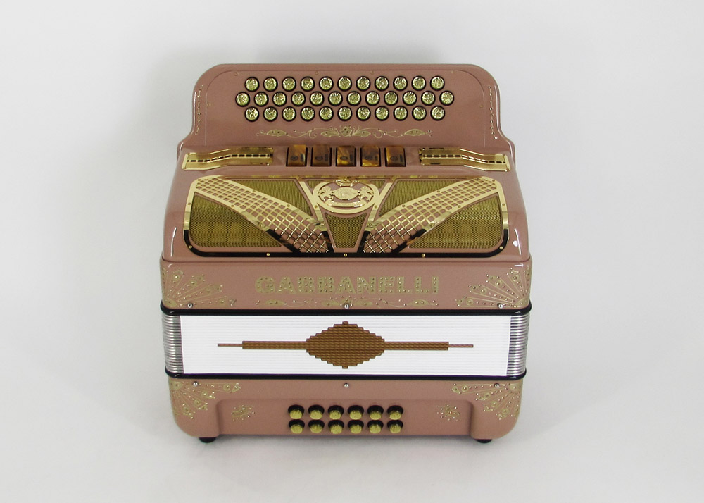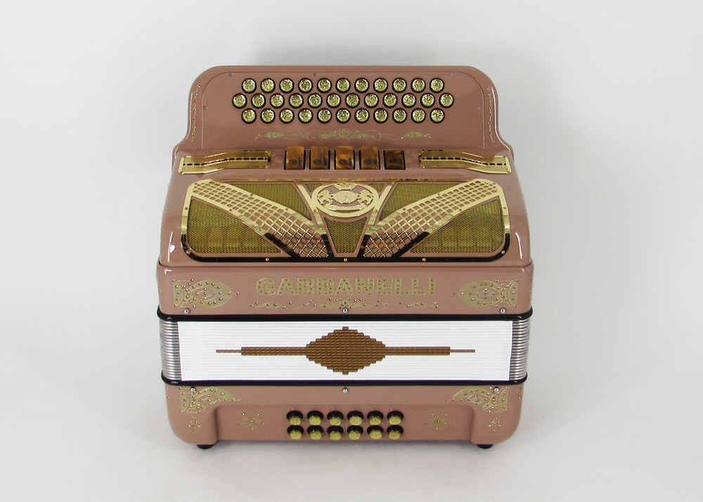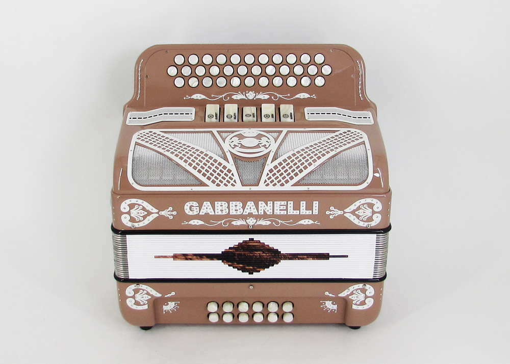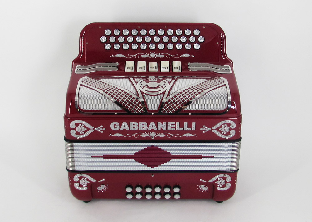Model 400- 34 Buttons – 5 sound registers, Original size. Bass reed blocks are available upon special request and surcharge.