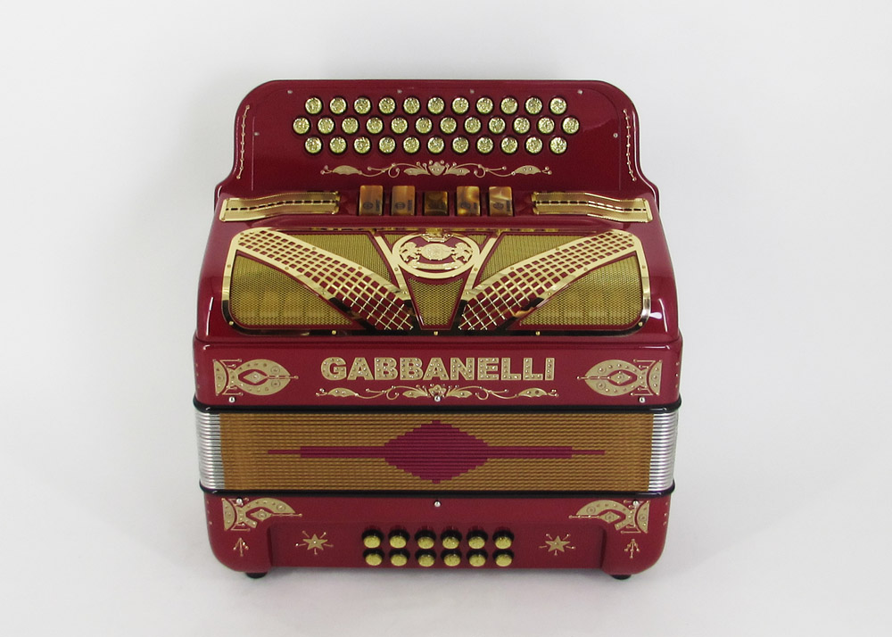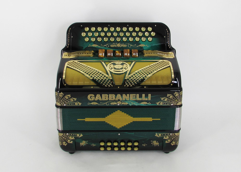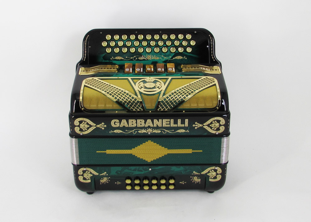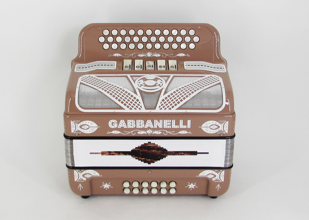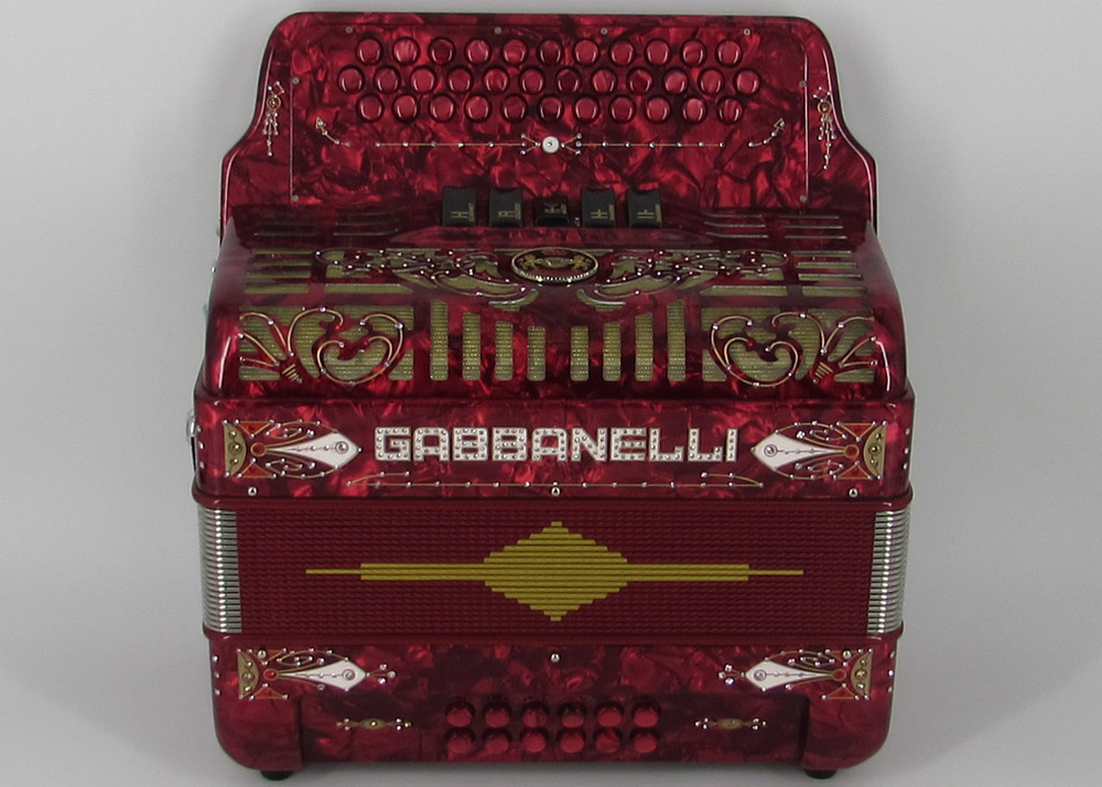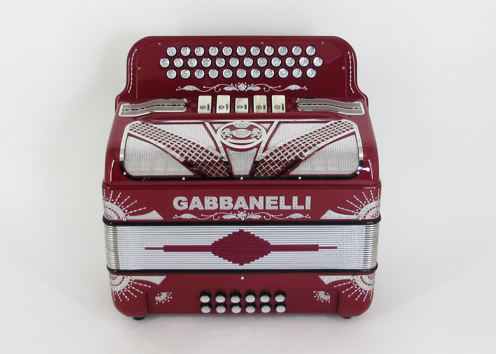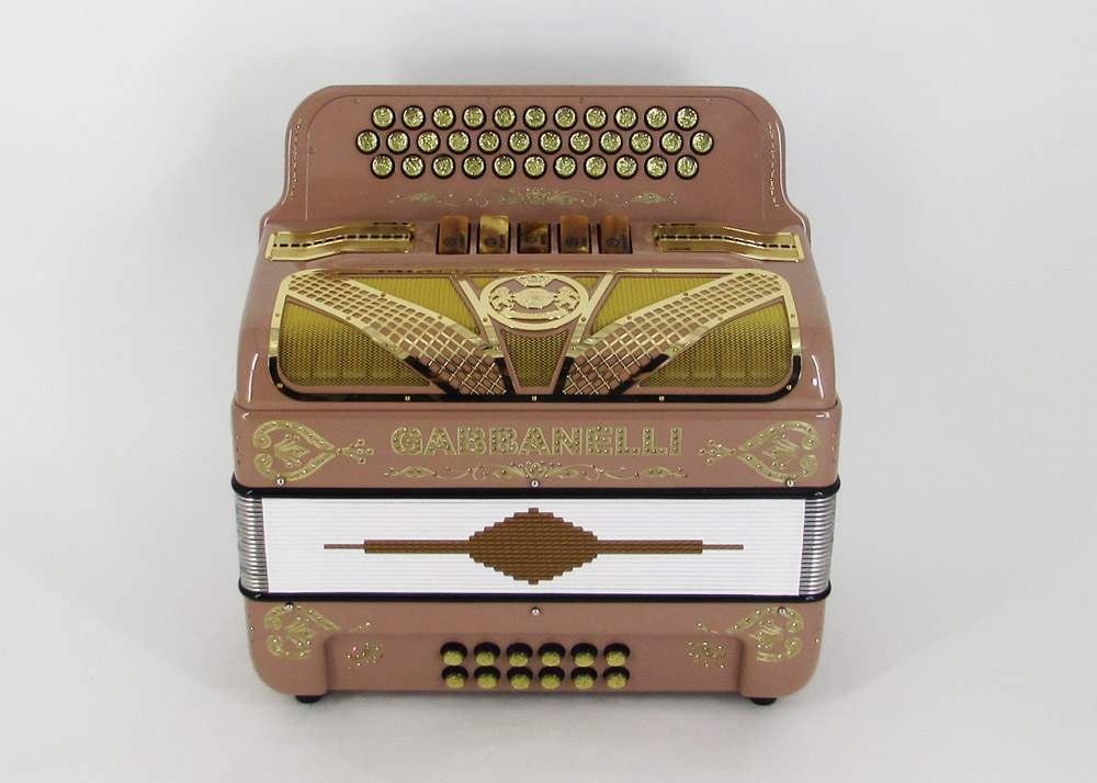 Model 400- 34 Buttons – 5 sound registers, Original size. Bass reed blocks are available upon special request and surcharge.