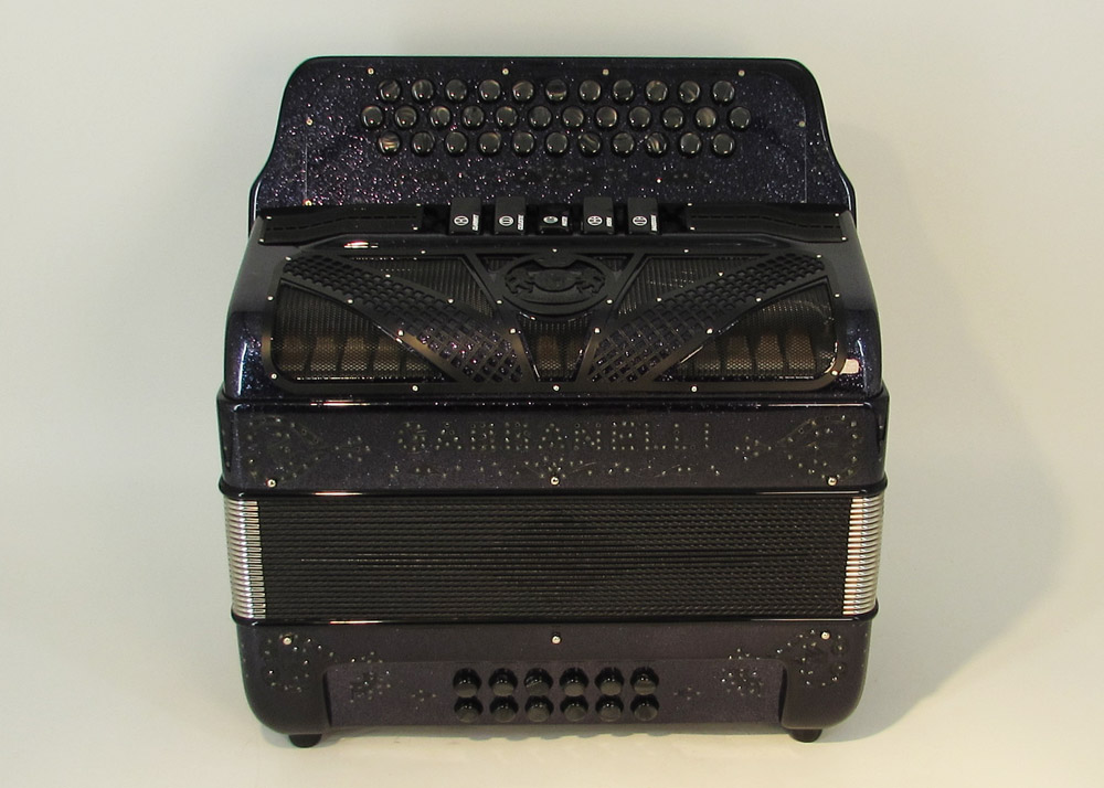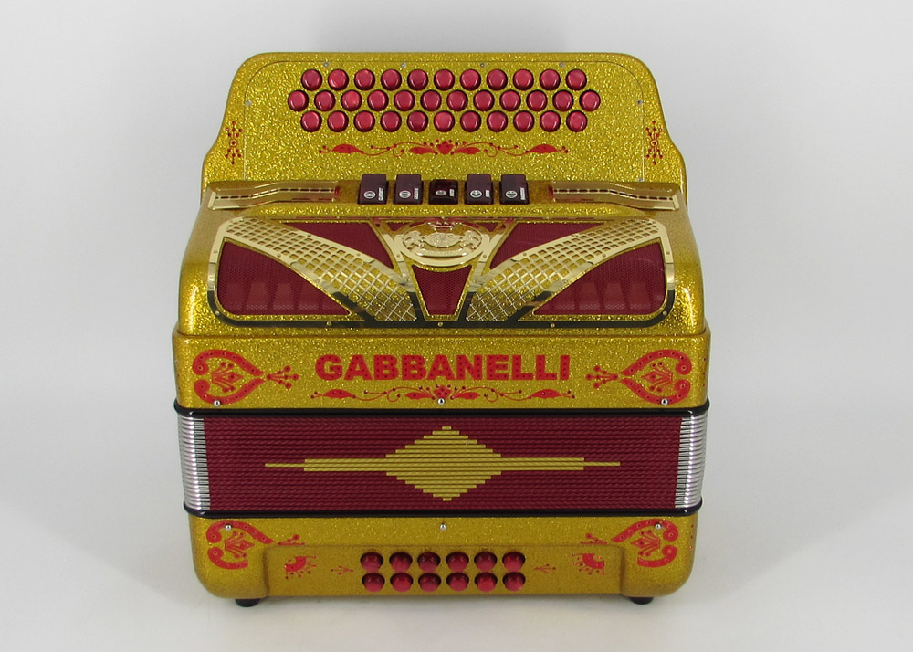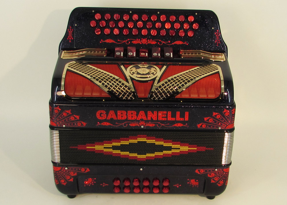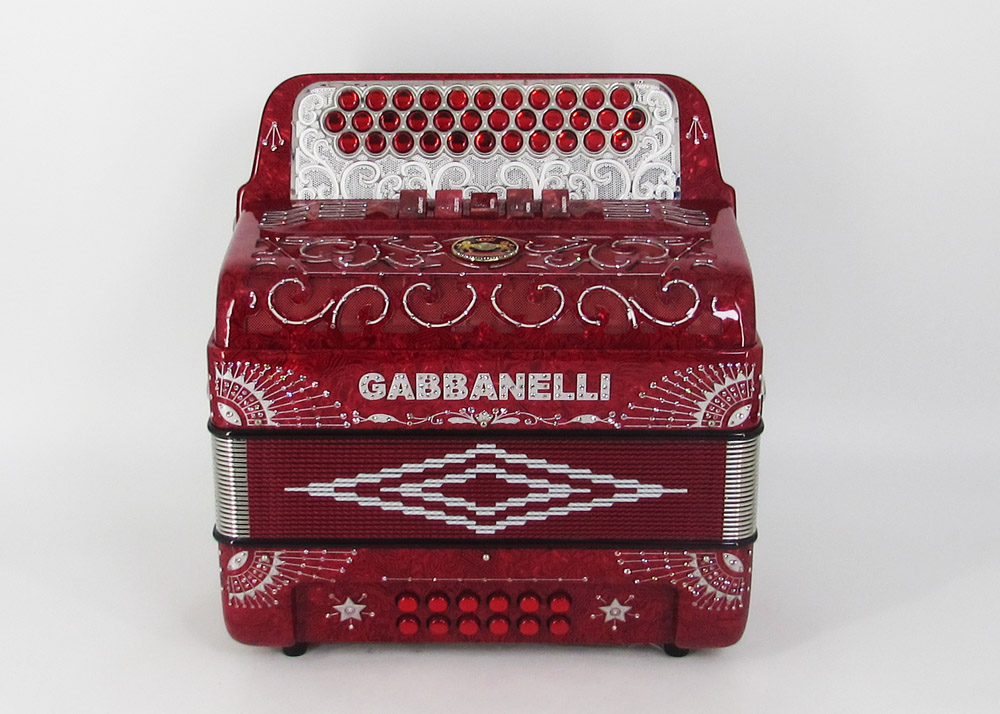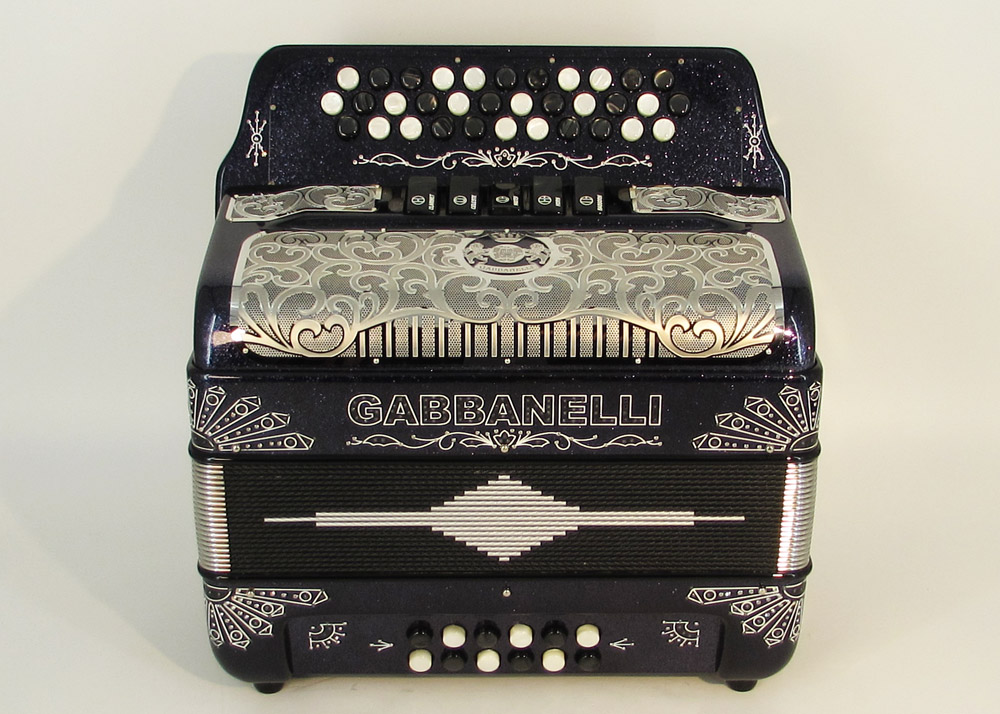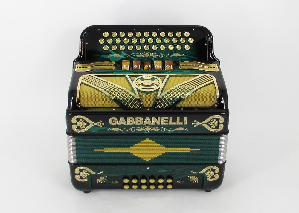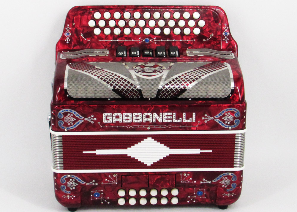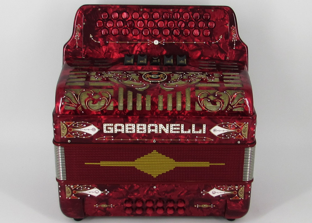 Model 400- 34 Buttons – 5 sound registers, Original size. Bass reed blocks are available upon special request and surcharge.