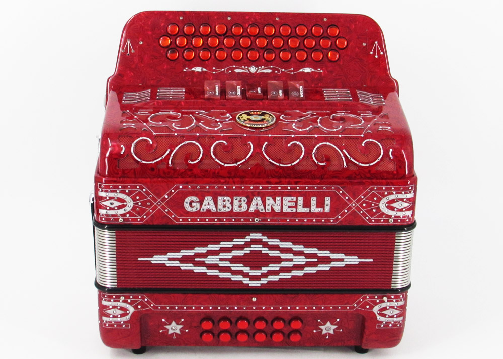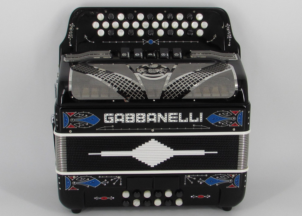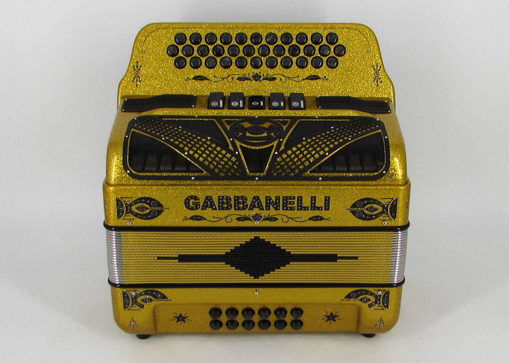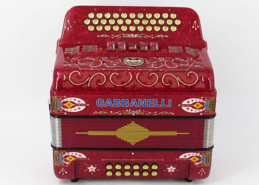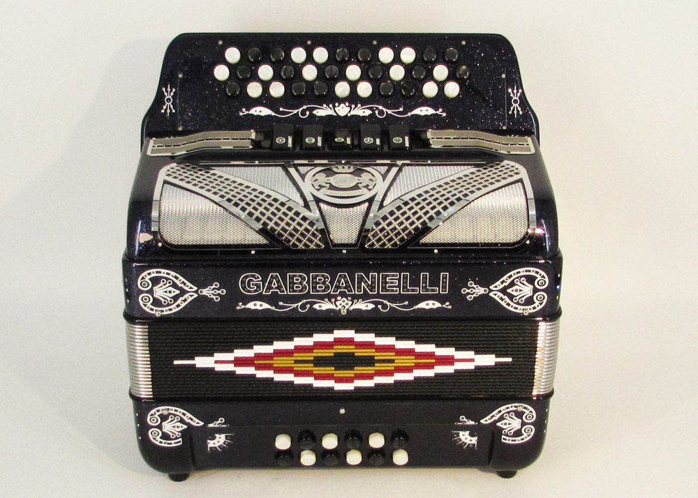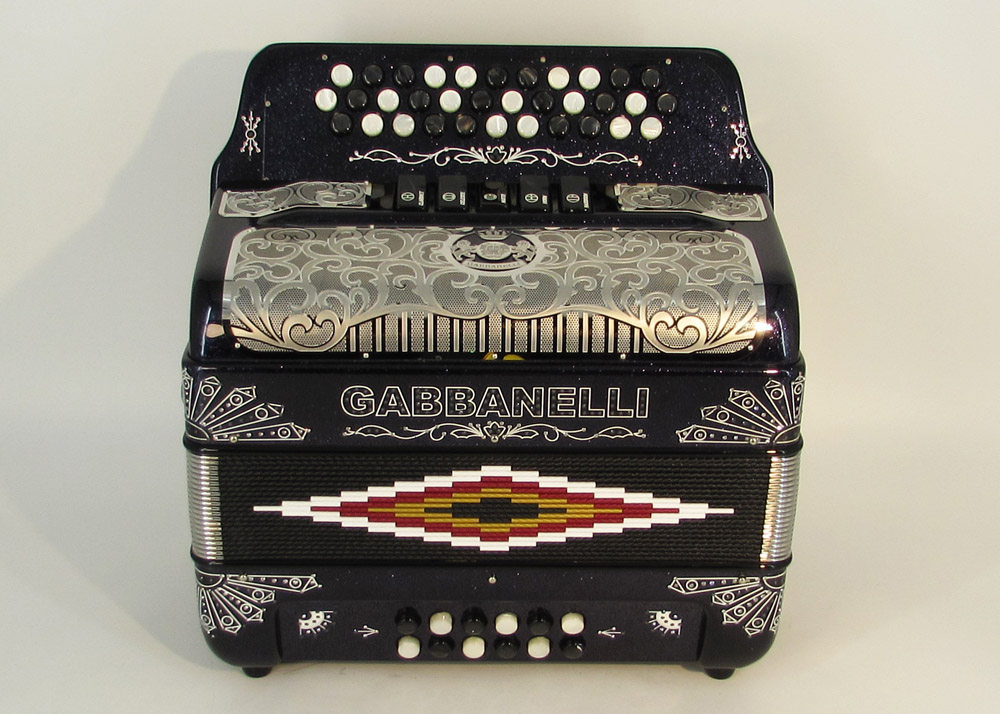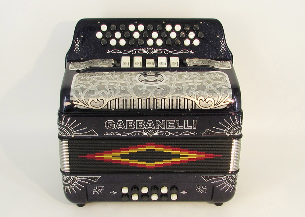 Model 400- 34 Buttons – 5 sound registers, Original size. Bass reed blocks are available upon special request and surcharge.