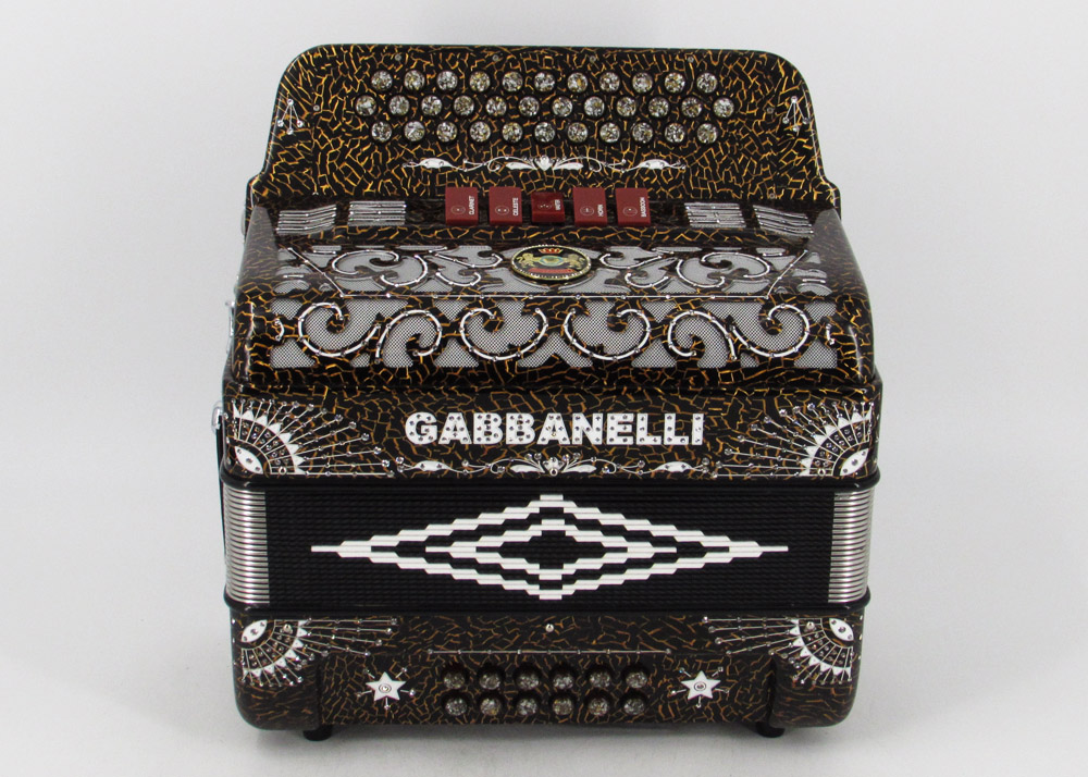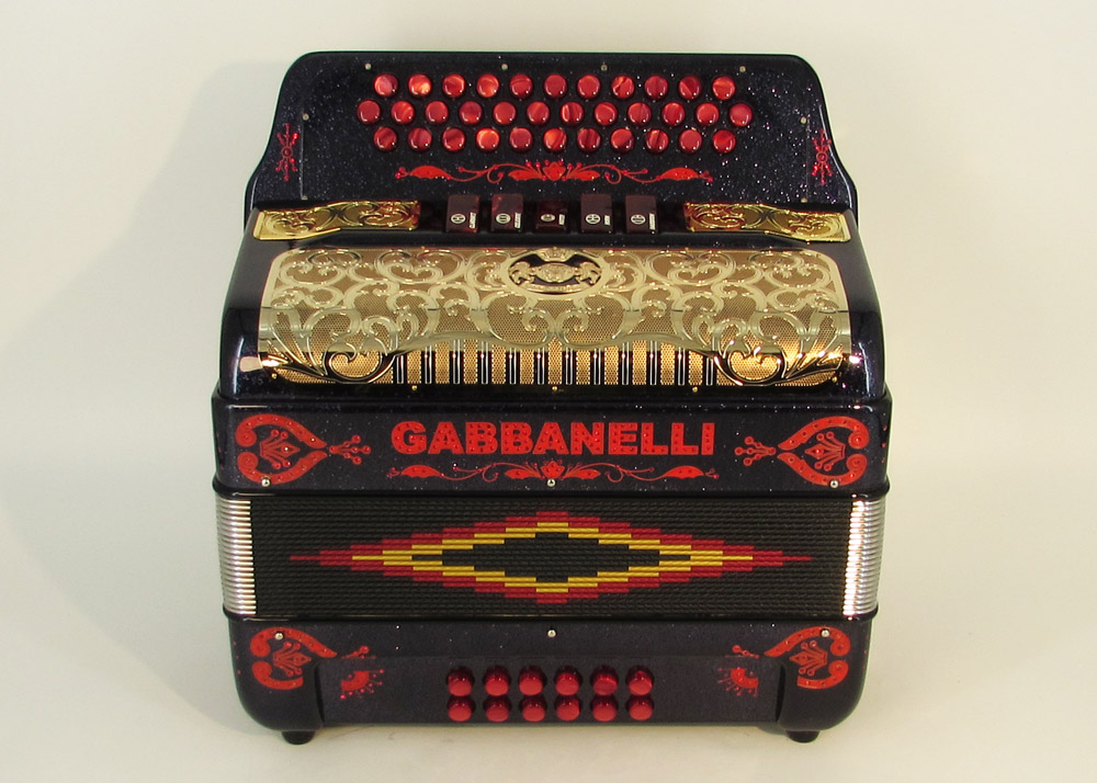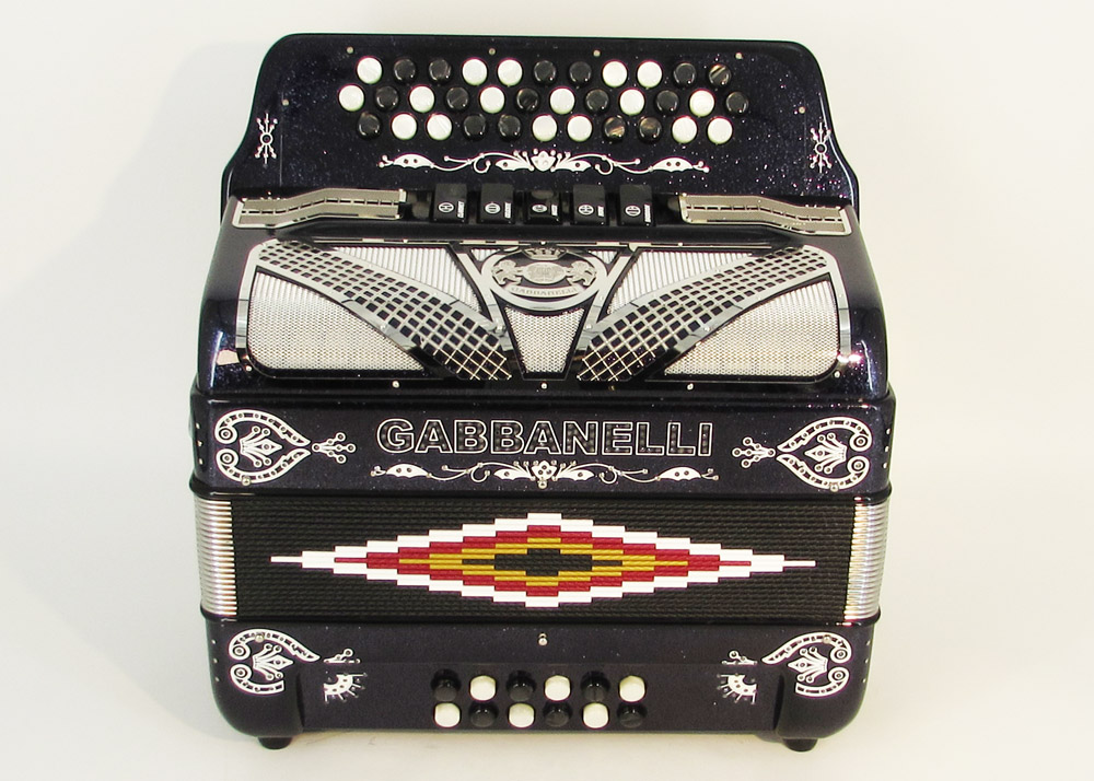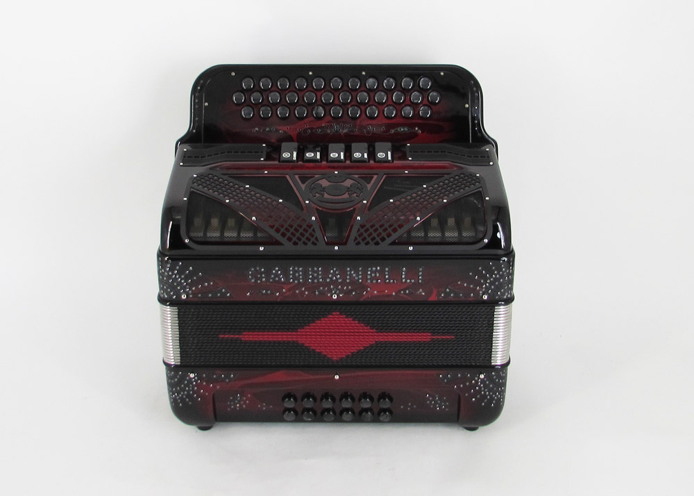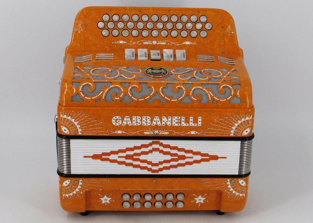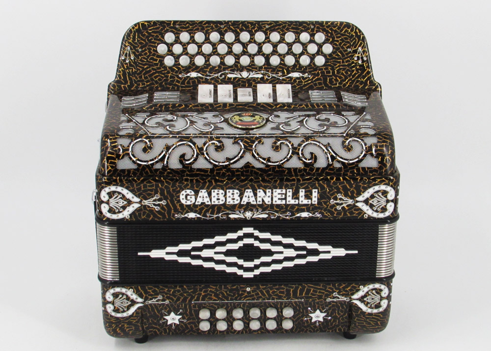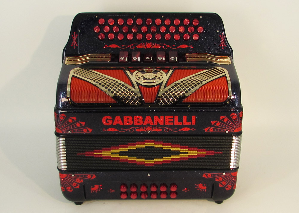 Model 400- 34 Buttons – 5 sound registers, Original size. Bass reed blocks are available upon special request and surcharge.