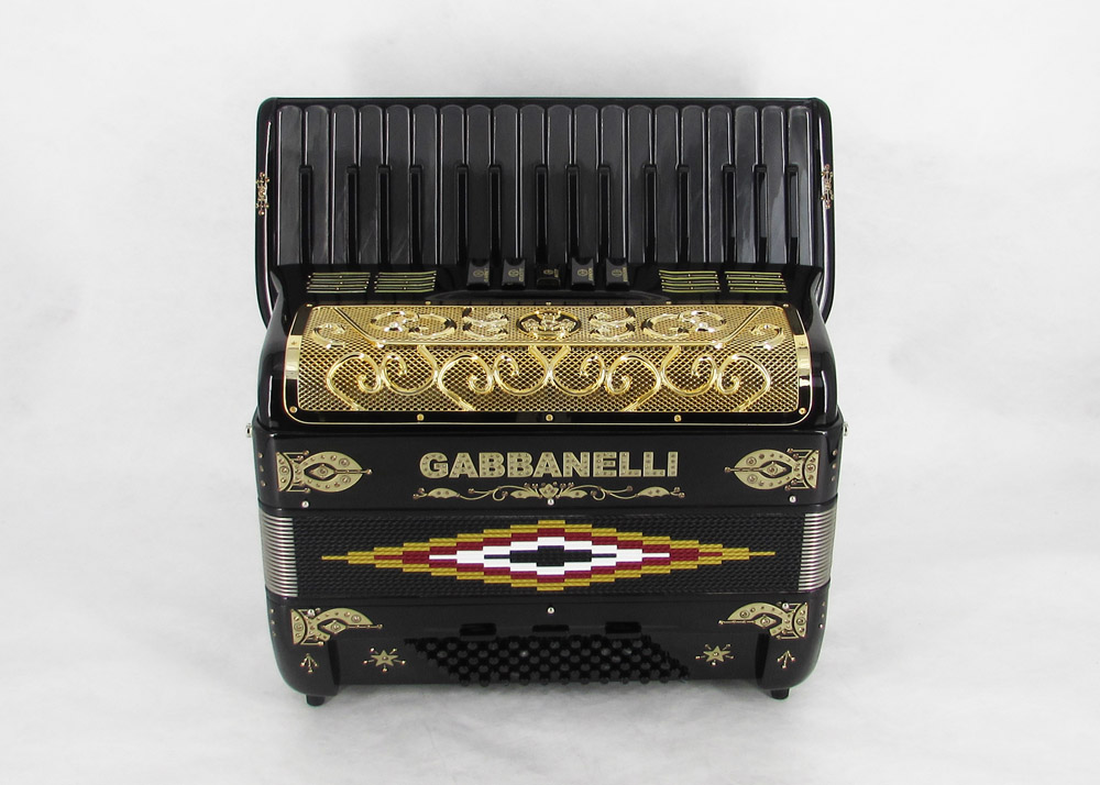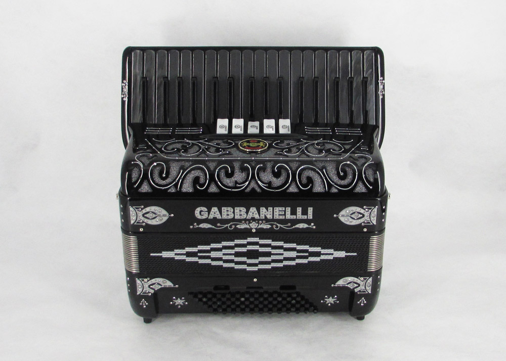 Model 34. 34 Keys, 72 Bass buttons 3 bass registers, and 3 registers on bass side, 5 sound registers, and 3 reeds in Master.