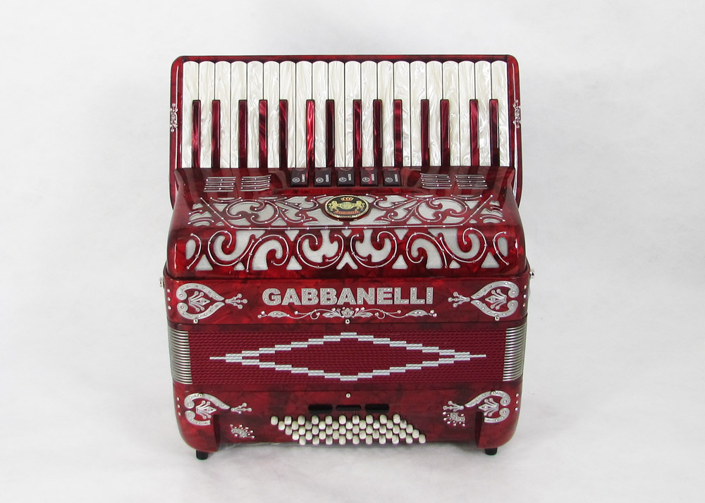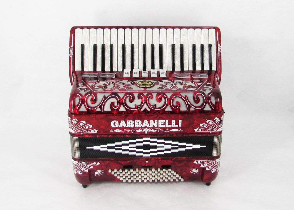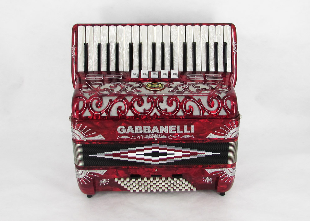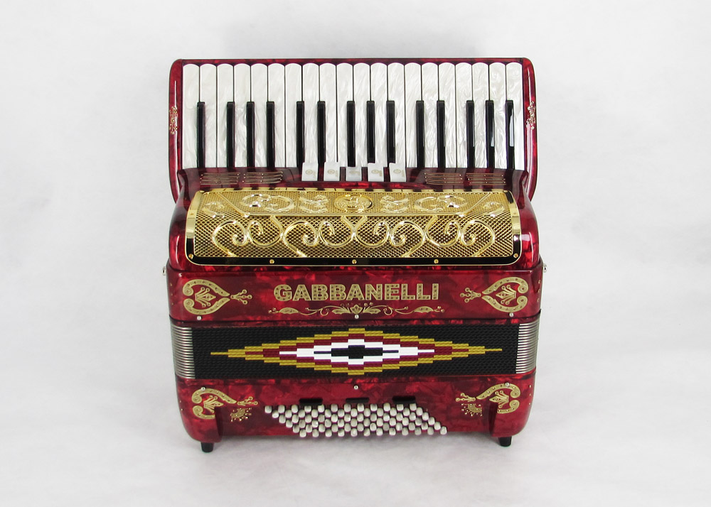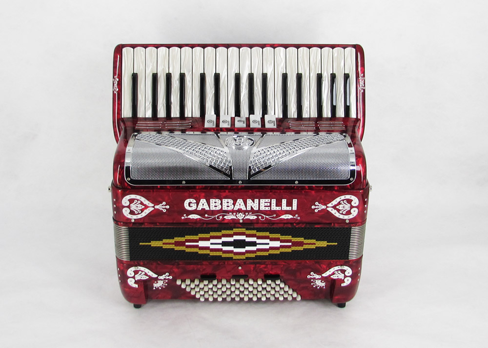 Model 34. 34 Keys, 50 Bass buttons, 5 sound registers, and 3 reeds in Master.
