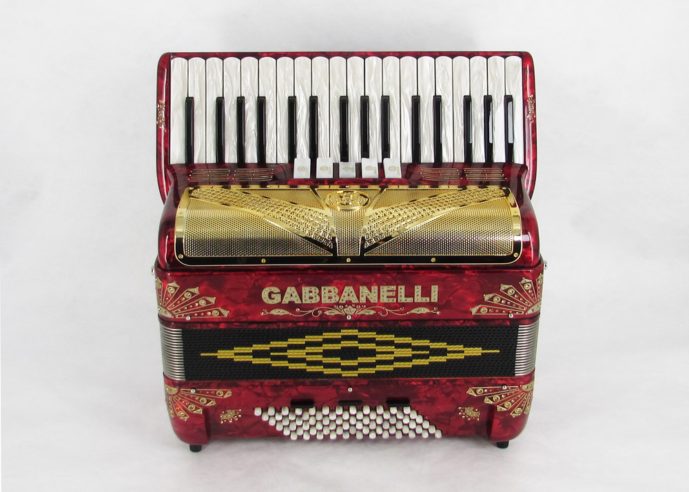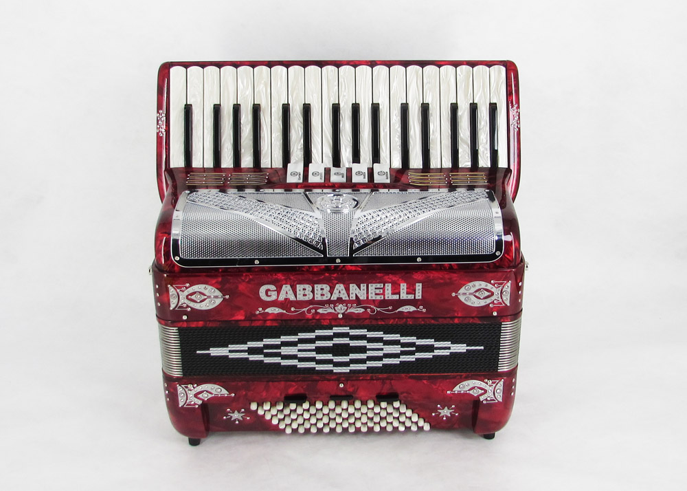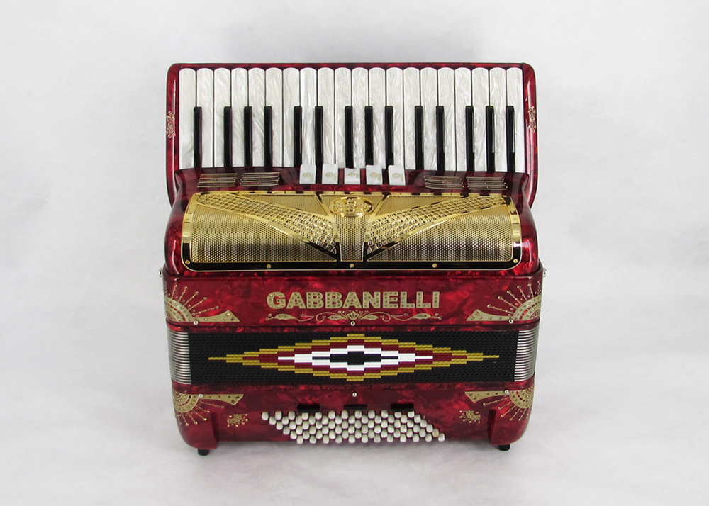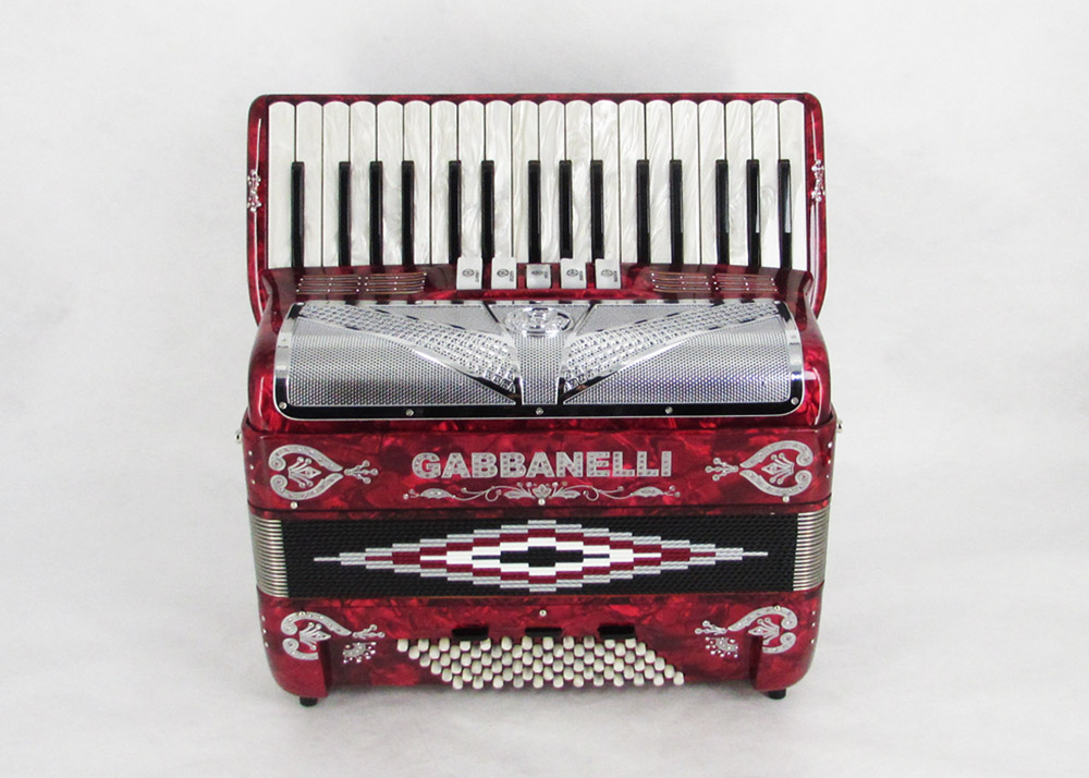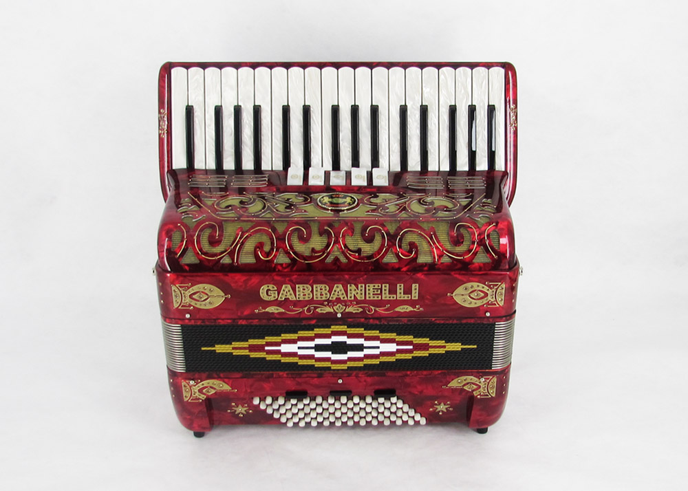 Model 34. 34 Keys, 50 Bass buttons, 5 sound registers, and 3 reeds in Master.