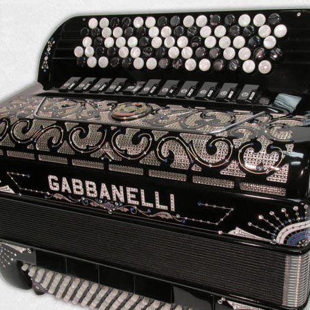 Gabbanelli Full Size Chromatic 5 rows, 77 buttons/ 46 working notes, 120 bass, 4 Sets of Reeds with mussette/basson, 11 register .