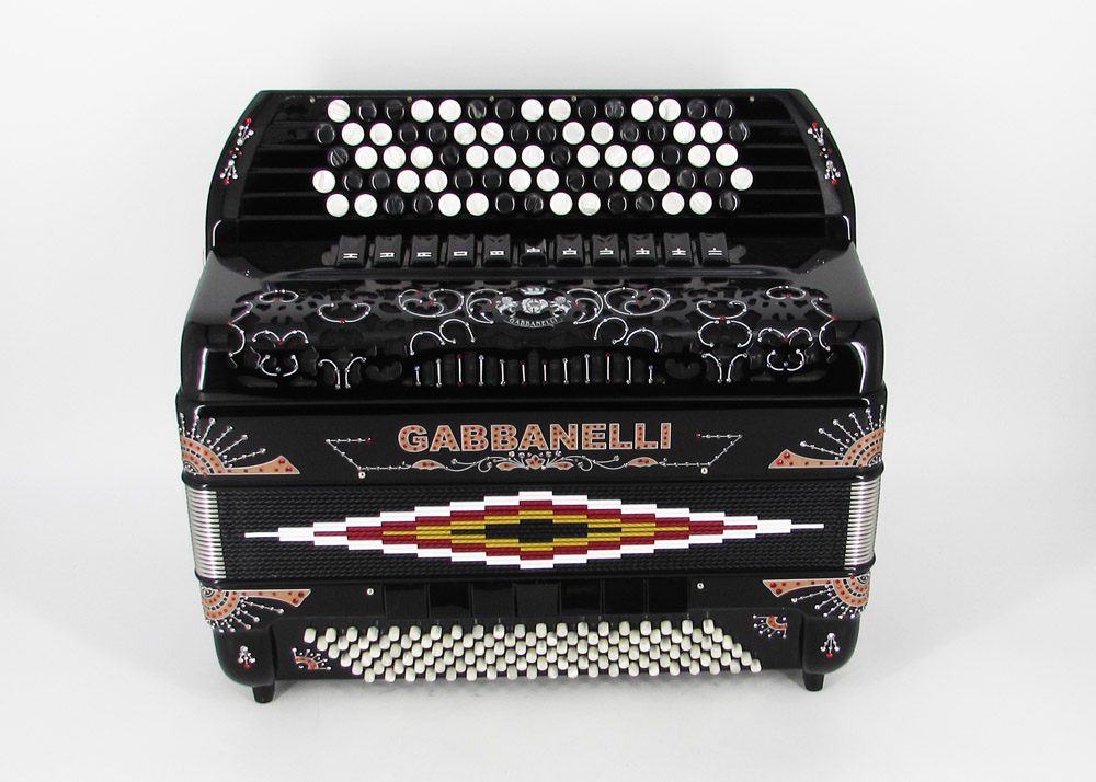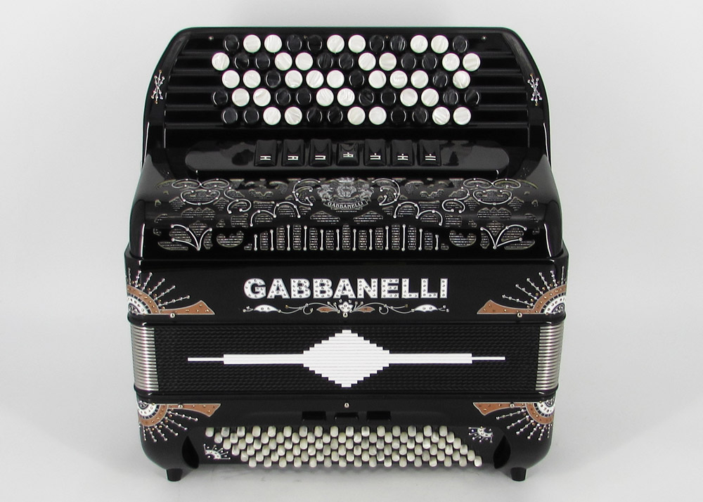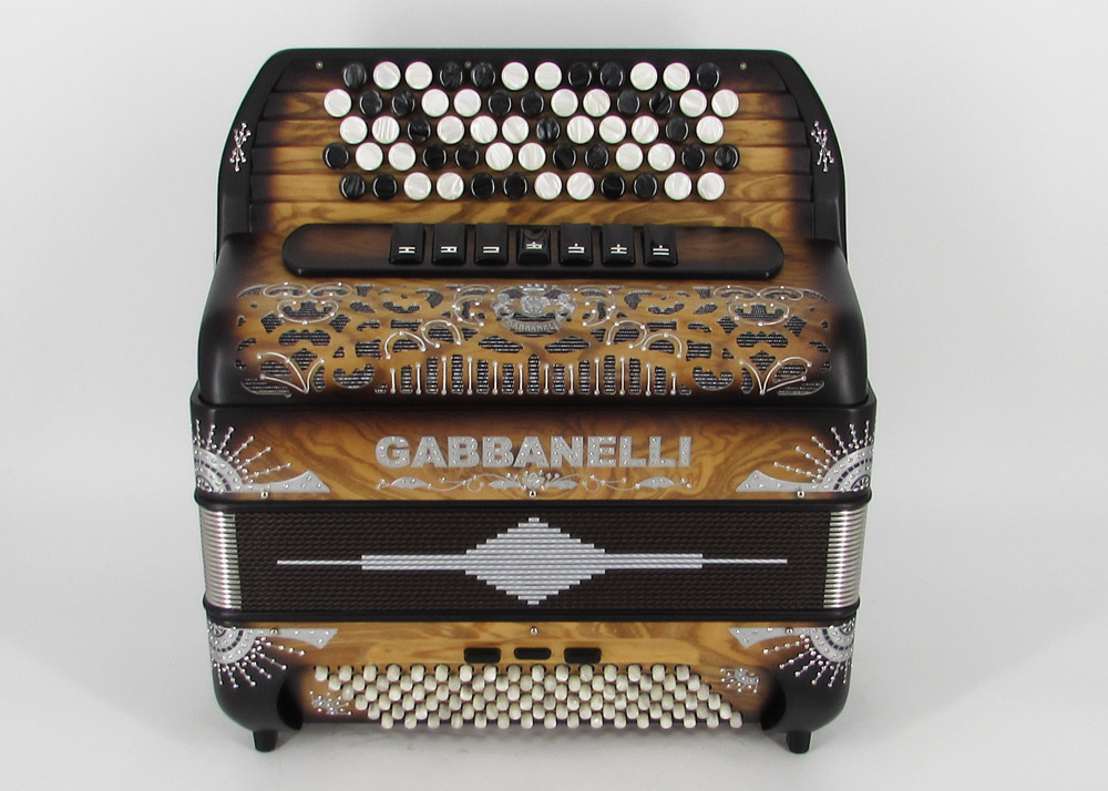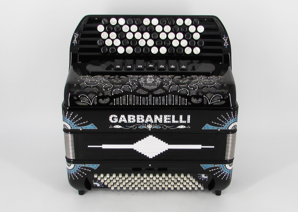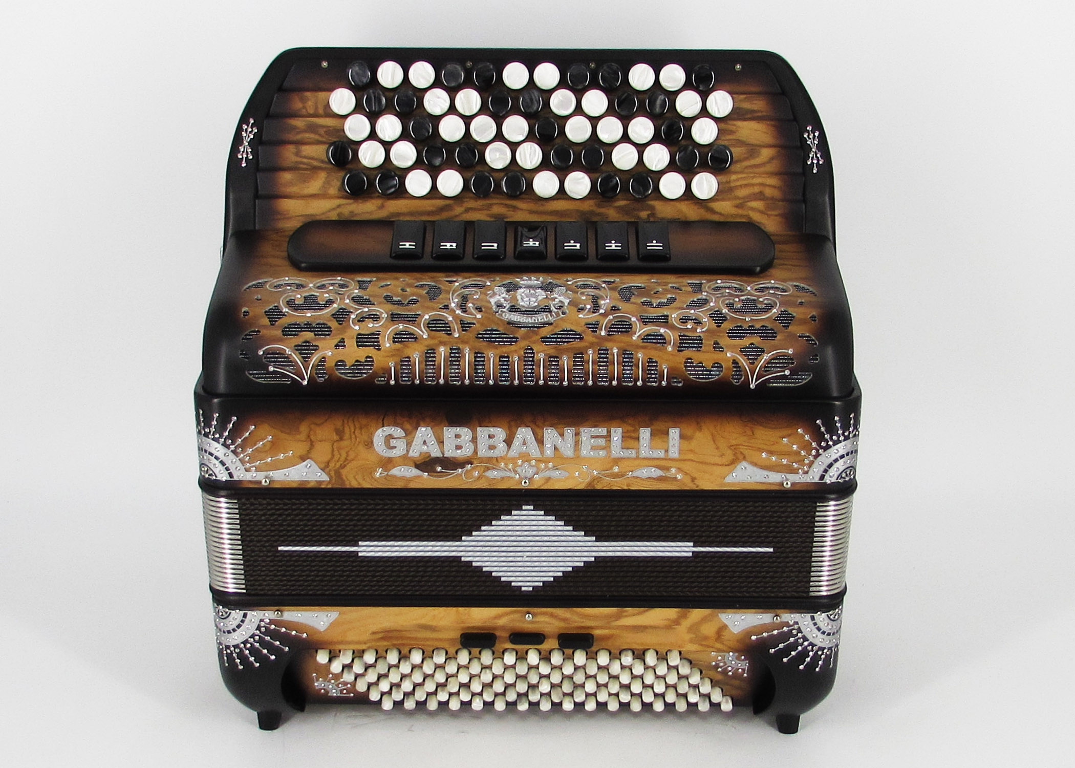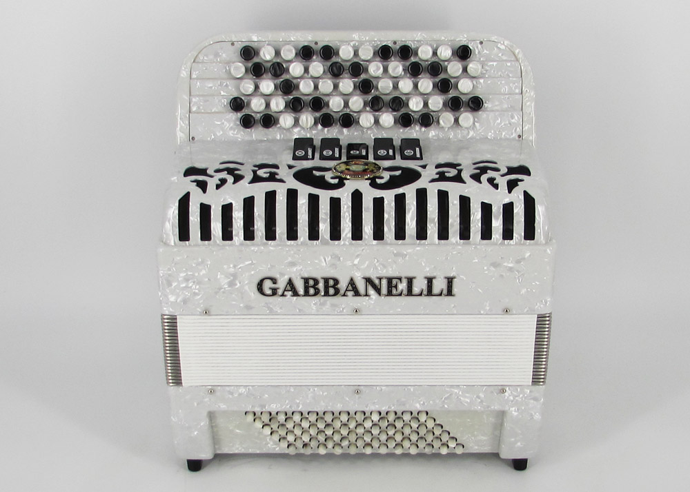 Gabbanelli Full Size Chromatic 5 rows, 77 buttons/ 46 working notes, 120 bass, 4 Sets of Reeds with mussette/basson, 11 register .