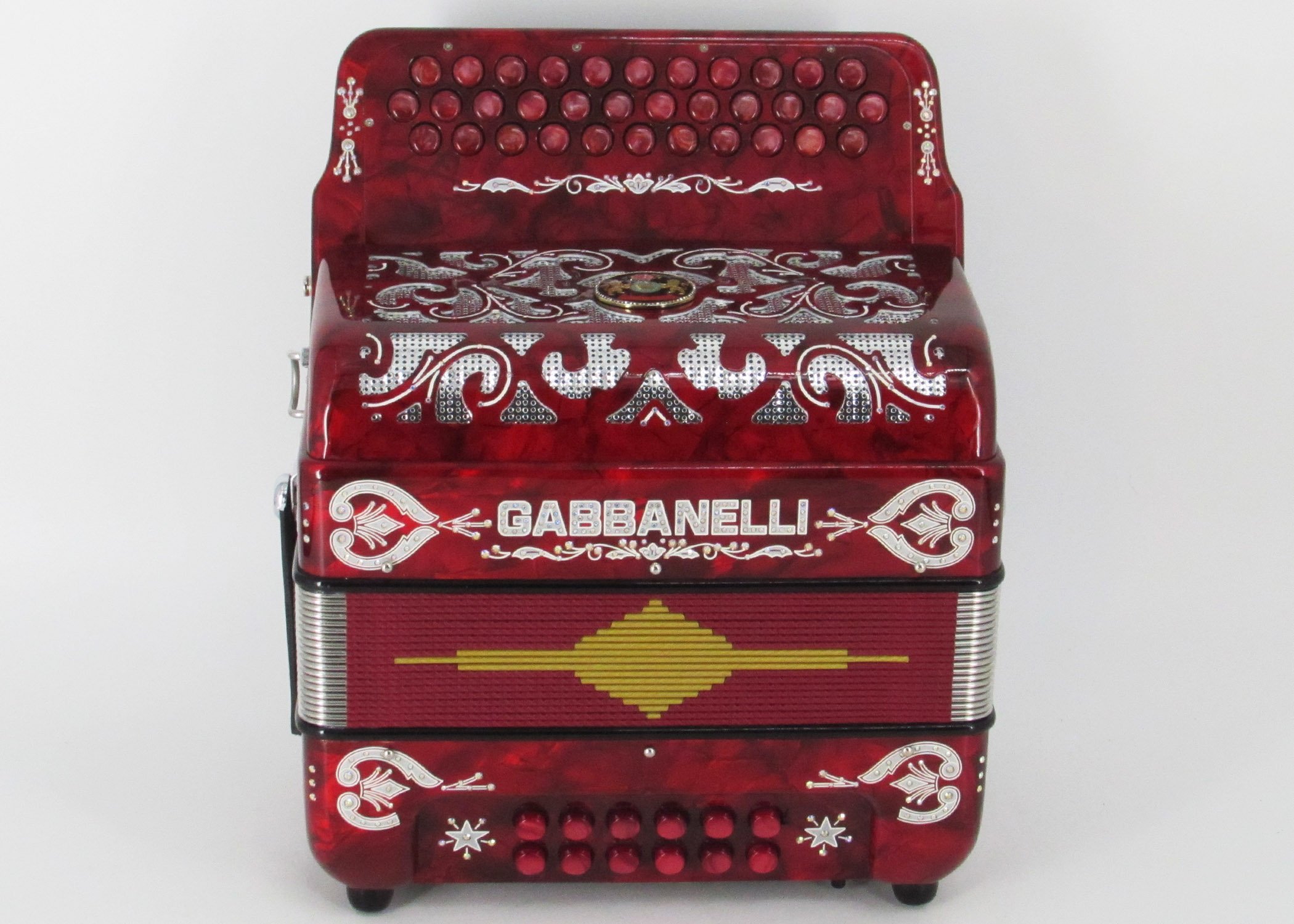 Gabbanelli M101 accordion has 34 buttons 12 bass no register classic design , features powerful clear tone, lightweight and compact body for comfortable professional use. Our Gabbanelli accordions are created from classic Italian artisan’s techniques to produce the best quality instrument that will last for years to come. Lightweight, Gabbanelli model without switches. Gabbanelli