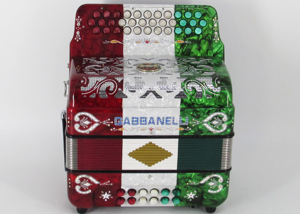 Gabbanelli M101 accordion has 34 buttons 12 bass no register classic design , features powerful clear tone, lightweight and compact body for comfortable professional use. Our Gabbanelli accordions are created from classic Italian artisan’s techniques to produce the best quality instrument that will last for years to come. Lightweight, Gabbanelli model without switches. Gabbanelli