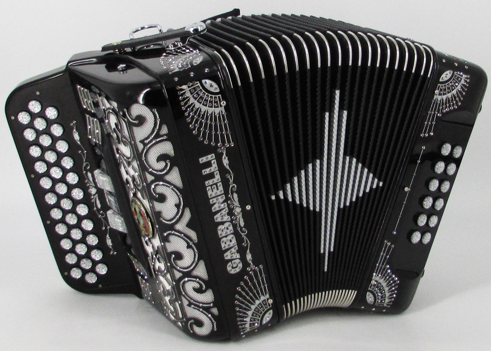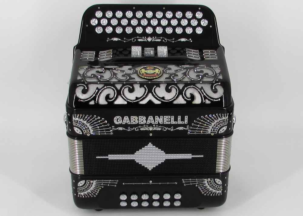 Custom designed lightweight compact Gabbanelli accordion with 3 registers 34 button. Highly preferred for its powerful sound, natural tuning and light weight compact stylish design. Handcrafted in Italy from the highest quality materials.  Gabbanelli Model 103 Compact- 34 Buttons – 3 sound registers. Bass reeds available upon request. Complete with case, straps and warranty.