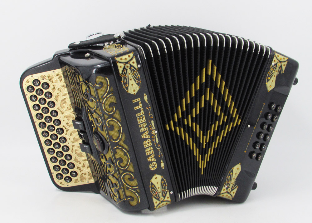 Custom designed lightweight compact Gabbanelli accordion with 3 registers 34 button. Highly preferred for its powerful sound, natural tuning and light weight compact stylish design. Handcrafted in Italy from the highest quality materials.  Gabbanelli Model 103 Compact- 34 Buttons – 3 sound registers. Bass reeds available upon request. Complete with case, straps and warranty.