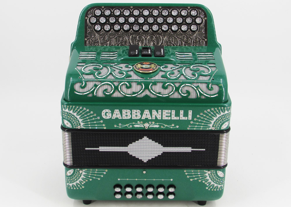 Custom designed lightweight compact Gabbanelli accordion with 3 registers 34 button. Highly preferred for its powerful sound, natural tuning and light weight compact stylish design. Handcrafted in Italy from the highest quality materials. Gabbanelli Model 103 Compact- 34 Buttons – 3 sound registers. Bass reeds available upon request. Complete with case, straps and warranty.
