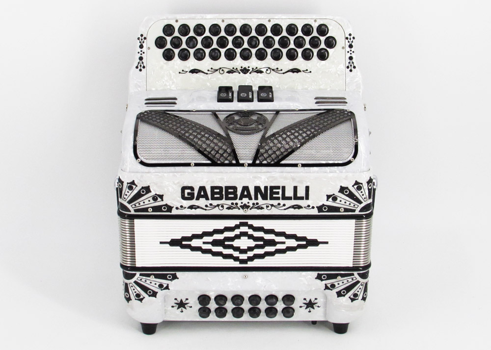Custom designed lightweight compact Gabbanelli accordion with 3 registers 34 button. Highly preferred for its powerful sound, natural tuning and light weight compact stylish design. Handcrafted in Italy from the highest quality materials. Gabbanelli Model 103 Compact- 34 Buttons – 3 sound registers. Bass reeds available upon request. Complete with case, straps and warranty.