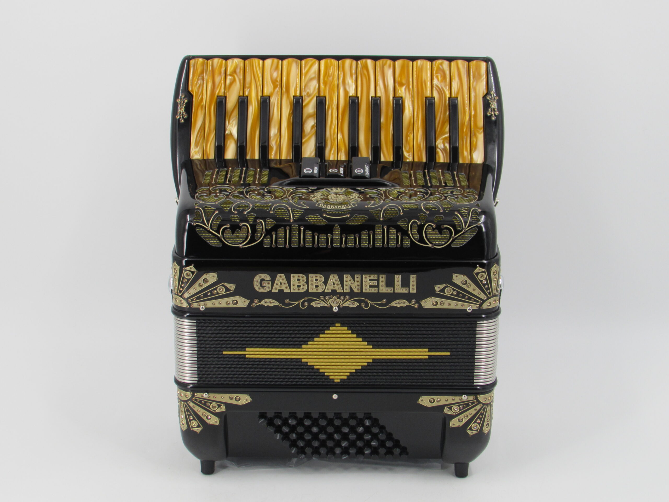 First note B. The smallest, lightest piano accordion with 16 white handmade keys, allowing you to play in any key. Features natural tuning and is handmade from the highest quality materials. Gabbanelli accordions are created from classic Italian artisan’s techniques to produce the finest quality instrument that will last for years to come. Complete with case, straps and warranty. Model 26- 26 Key, 48 Bass, 3 sound registers, first note on B.