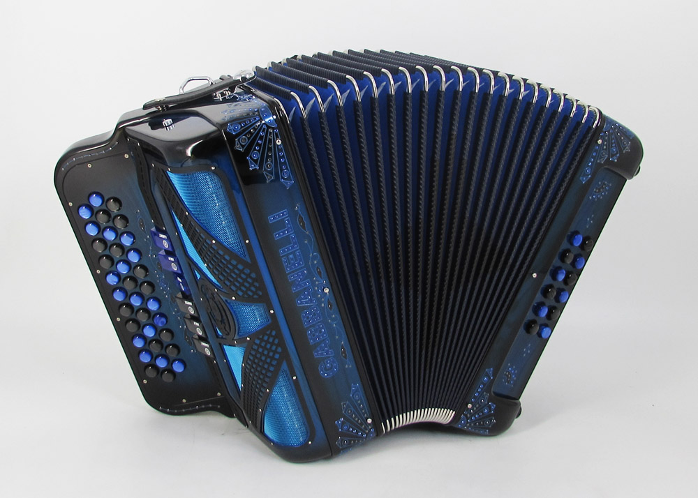 Pioneered by Gabbanelli accordions, the Gabbanelli 2 Tone accordion is like having two accordions in one. This Gabbanelli accordion is one of the most preferred for its versatility in changing keys at the touch of a register. Our current accordions are the finest instruments available and are a product of our expertise coupled with a continued collaboration since 1961 with our accordionist. Our mission is to serve the ever-changing needs and demands of our musicians. This masterpiece is the product of Gabbanelli’s decades of developments alongside only highly trained Italian artisans whom meet our standards of excellence. Model 2Tone-34 Buttons-two tones in one, 3 sound registers each tone. Complete with case, straps and warranty.