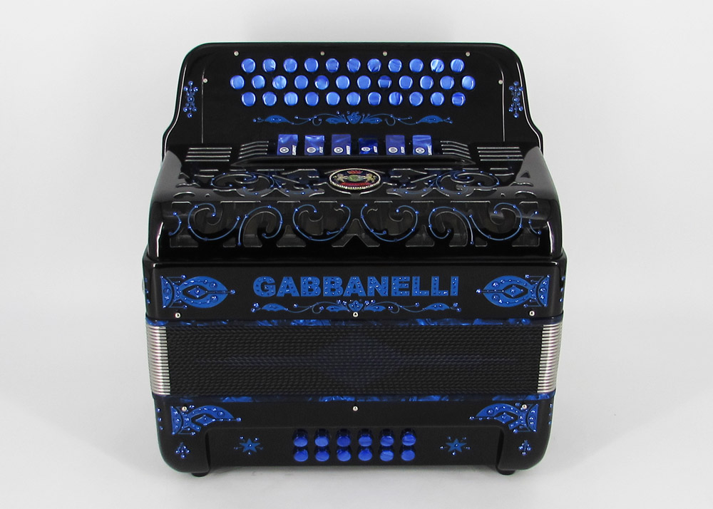 Pioneered by Gabbanelli accordions, the Gabbanelli 2 Tone accordion is like having two accordions in one. This Gabbanelli accordion is one of the most preferred for its versatility in changing keys at the touch of a register. Our current accordions are the finest instruments available and are a product of our expertise coupled with a continued collaboration since 1961 with our accordionist. Our mission is to serve the ever-changing needs and demands of our musicians. This masterpiece is the product of Gabbanelli’s decades of developments alongside only highly trained Italian artisans whom meet our standards of excellence. Model 2Tone-34 Buttons-two tones in one, 3 sound registers each tone. Complete with case, straps and warranty.