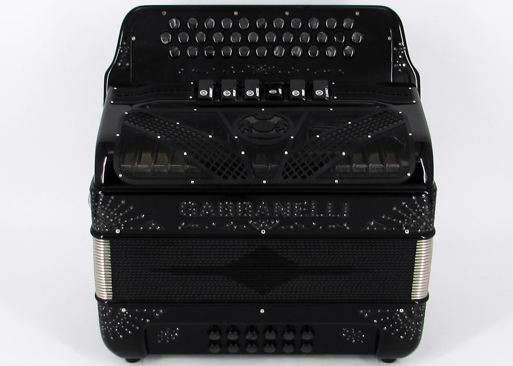 Pioneered by Gabbanelli accordions, the Gabbanelli 2 Tone accordion is like having two accordions in one. This Gabbanelli accordion is one of the most preferred for its versatility in changing keys at the touch of a register. Our current accordions are the finest instruments available and are a product of our expertise coupled with a continued collaboration since 1961 with our accordionist. Our mission is to serve the ever-changing needs and demands of our musicians. This masterpiece is the product of Gabbanelli’s decades of developments alongside only highly trained Italian artisans whom meet our standards of excellence. Model 2Tone-34 Buttons-two tones in one, 3 sound registers each tone. Complete with case, straps and warranty.