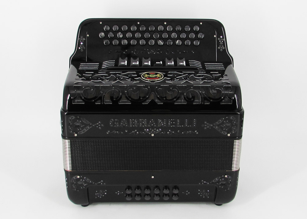 Pioneered by Gabbanelli accordions, the Gabbanelli 2 Tone accordion is like having two accordions in one. This Gabbanelli accordion is one of the most preferred for its versatility in changing keys at the touch of a register. Our current accordions are the finest instruments available and are a product of our expertise coupled with a continued collaboration since 1961 with our accordionist. Our mission is to serve the ever-changing needs and demands of our musicians. This masterpiece is the product of Gabbanellis decades of developments alongside only highly trained Italian artisans whom meet our standards of excellence. Model 2Tone-34 Buttons-two tones in one, 3 sound registers each tone. Complete with case, straps and warranty.
