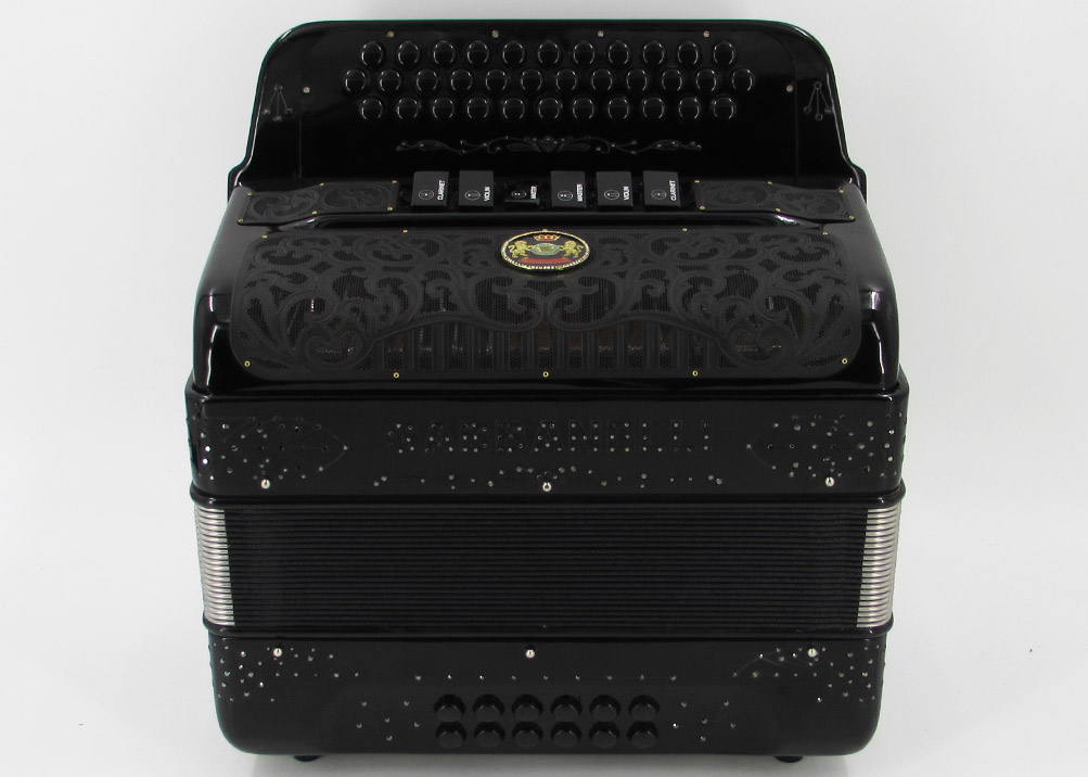 Pioneered by Gabbanelli accordions, the Gabbanelli 2 Tone accordion is like having two accordions in one. This Gabbanelli accordion is one of the most preferred for its versatility in changing keys at the touch of a register. Our current accordions are the finest instruments available and are a product of our expertise coupled with a continued collaboration since 1961 with our accordionist. Our mission is to serve the ever-changing needs and demands of our musicians. This masterpiece is the product of Gabbanellis decades of developments alongside only highly trained Italian artisans whom meet our standards of excellence. Model 2Tone-34 Buttons-two tones in one, 3 sound registers each tone. Complete with case, straps and warranty.
