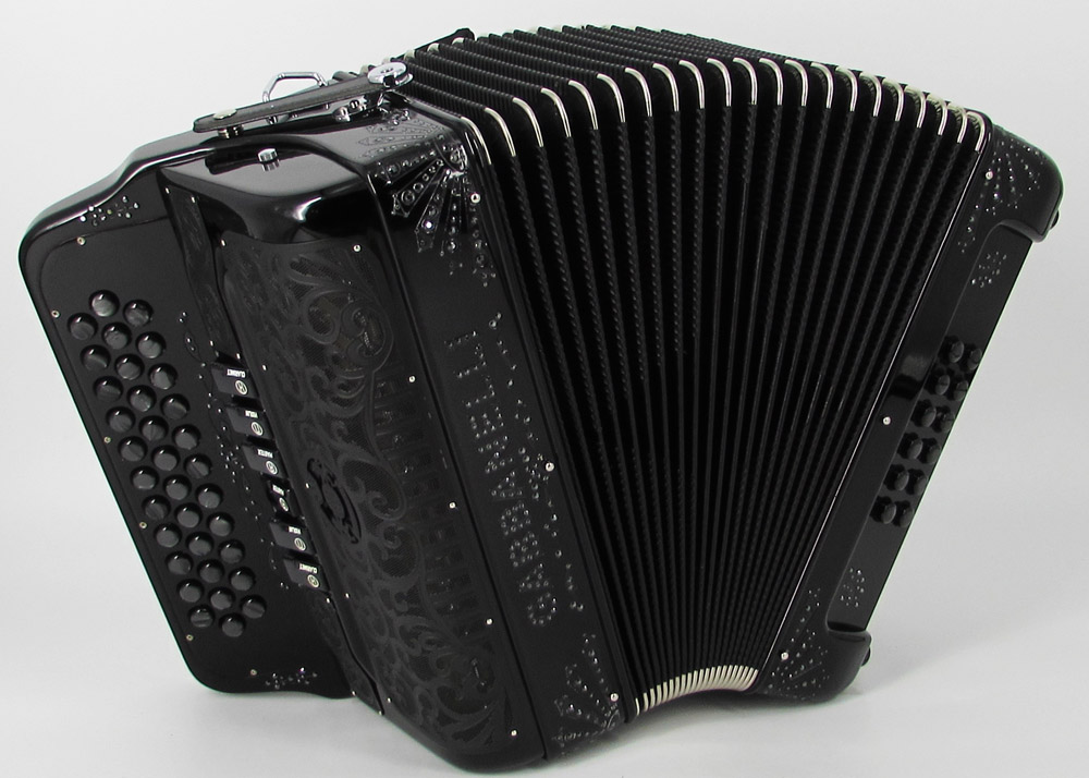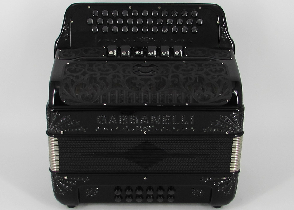 Pioneered by Gabbanelli accordions, the Gabbanelli 2 Tone accordion is like having two accordions in one. This Gabbanelli accordion is one of the most preferred for its versatility in changing keys at the touch of a register. Our current accordions are the finest instruments available and are a product of our expertise coupled with a continued collaboration since 1961 with our accordionist. Our mission is to serve the ever-changing needs and demands of our musicians. This masterpiece is the product of Gabbanelli’s decades of developments alongside only highly trained Italian artisans whom meet our standards of excellence. Model 2Tone-34 Buttons-two tones in one, 3 sound registers each tone. Complete with case, straps and warranty.