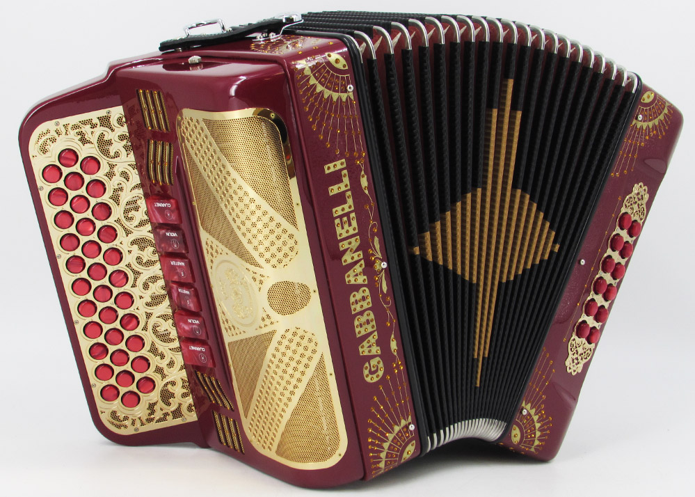Gabbanelli Accordions designed this never-before-seen custom, compact size Gabbanelli 2 tone accordion as smaller and lighter than our classic size Gabbanelli Model 2 Tone.  This Gabbanelli accordion is one of the most preferred for its versatility in changing keys at the touch of a register constructed with superior Italian artisan craftsmanship and highest quality materials. Model 2Tone Compact size-34 Buttons-two tones in one, 3 sound registers each tone.   Complete with case, straps and warranty.