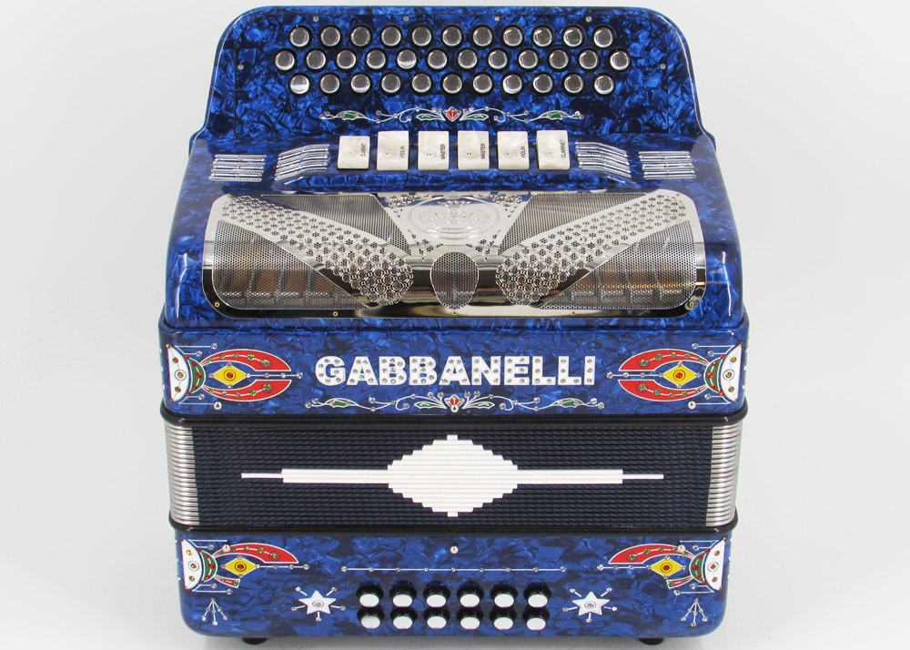 Gabbanelli Accordions designed this never-before-seen custom, compact size Gabbanelli 2 tone accordion as smaller and lighter than our classic size Gabbanelli Model 2 Tone.  This Gabbanelli accordion is one of the most preferred for its versatility in changing keys at the touch of a register constructed with superior Italian artisan craftsmanship and highest quality materials. Model 2Tone Compact size-34 Buttons-two tones in one, 3 sound registers each tone.   Complete with case, straps and warranty.