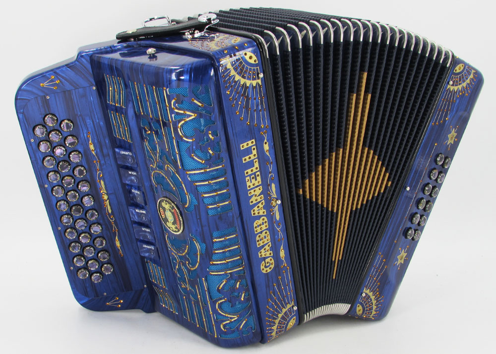 Pioneered by Gabbanelli accordions, the Gabbanelli 2 Tone accordion is like having two accordions in one. This Gabbanelli accordion is one of the most preferred for its versatility in changing keys at the touch of a register. Our current accordions are the finest instruments available and are a product of our expertise coupled with a continued collaboration since 1961 with our accordionist. Our mission is to serve the ever-changing needs and demands of our musicians. This masterpiece is the product of Gabbanelli’s decades of developments alongside only highly trained Italian artisans whom meet our standards of excellence. Model 2Tone-34 Buttons-two tones in one, 3 sound registers each tone. Complete with case, straps and warranty.