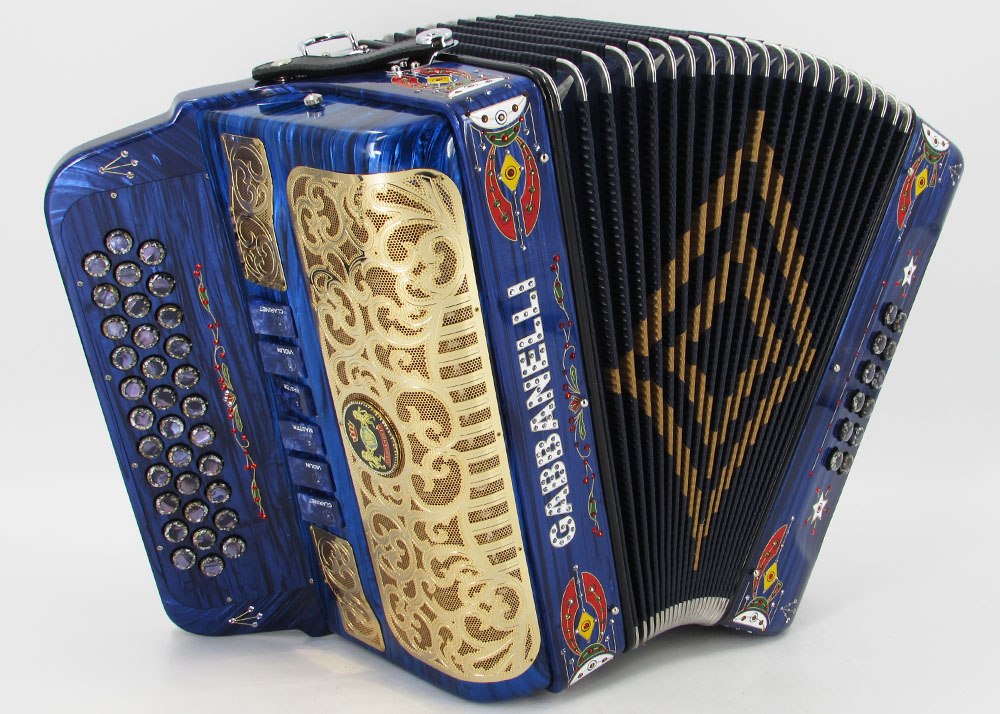 Pioneered by Gabbanelli accordions, the Gabbanelli 2 Tone accordion is like having two accordions in one. This Gabbanelli accordion is one of the most preferred for its versatility in changing keys at the touch of a register. Our current accordions are the finest instruments available and are a product of our expertise coupled with a continued collaboration since 1961 with our accordionist. Our mission is to serve the ever-changing needs and demands of our musicians. This masterpiece is the product of Gabbanellis decades of developments alongside only highly trained Italian artisans whom meet our standards of excellence. Model 2Tone-34 Buttons-two tones in one, 3 sound registers each tone. Complete with case, straps and warranty.