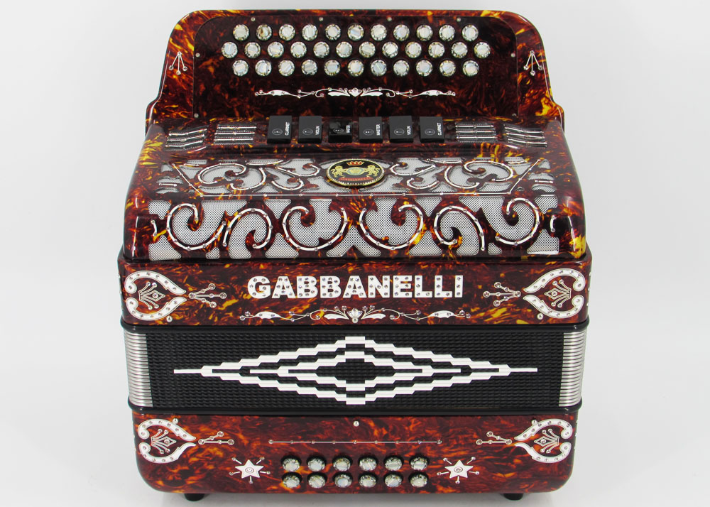 Pioneered by Gabbanelli accordions, the Gabbanelli 2 Tone accordion is like having two accordions in one. This Gabbanelli accordion is one of the most preferred for its versatility in changing keys at the touch of a register. Our current accordions are the finest instruments available and are a product of our expertise coupled with a continued collaboration since 1961 with our accordionist. Our mission is to serve the ever-changing needs and demands of our musicians. This masterpiece is the product of Gabbanellis decades of developments alongside only highly trained Italian artisans whom meet our standards of excellence. Model 2Tone-34 Buttons-two tones in one, 3 sound registers each tone. Complete with case, straps and warranty.