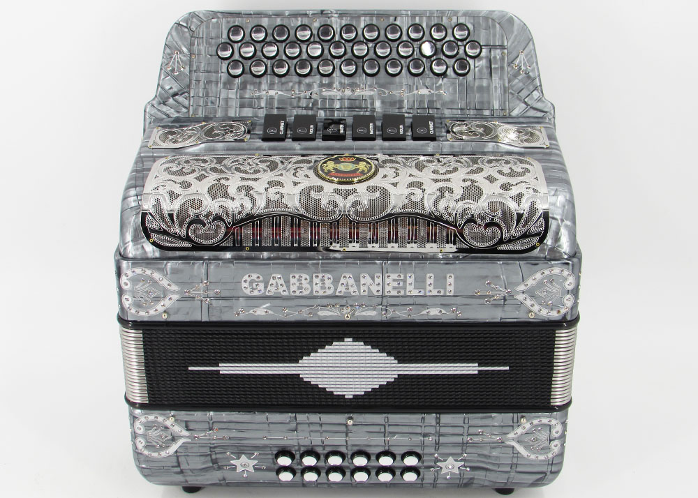 Pioneered by Gabbanelli accordions, the Gabbanelli 2 Tone accordion is like having two accordions in one. This Gabbanelli accordion is one of the most preferred for its versatility in changing keys at the touch of a register. Our current accordions are the finest instruments available and are a product of our expertise coupled with a continued collaboration since 1961 with our accordionist. Our mission is to serve the ever-changing needs and demands of our musicians. This masterpiece is the product of Gabbanelli’s decades of developments alongside only highly trained Italian artisans whom meet our standards of excellence. Model 2Tone-34 Buttons-two tones in one, 3 sound registers each tone. Complete with case, straps and warranty.