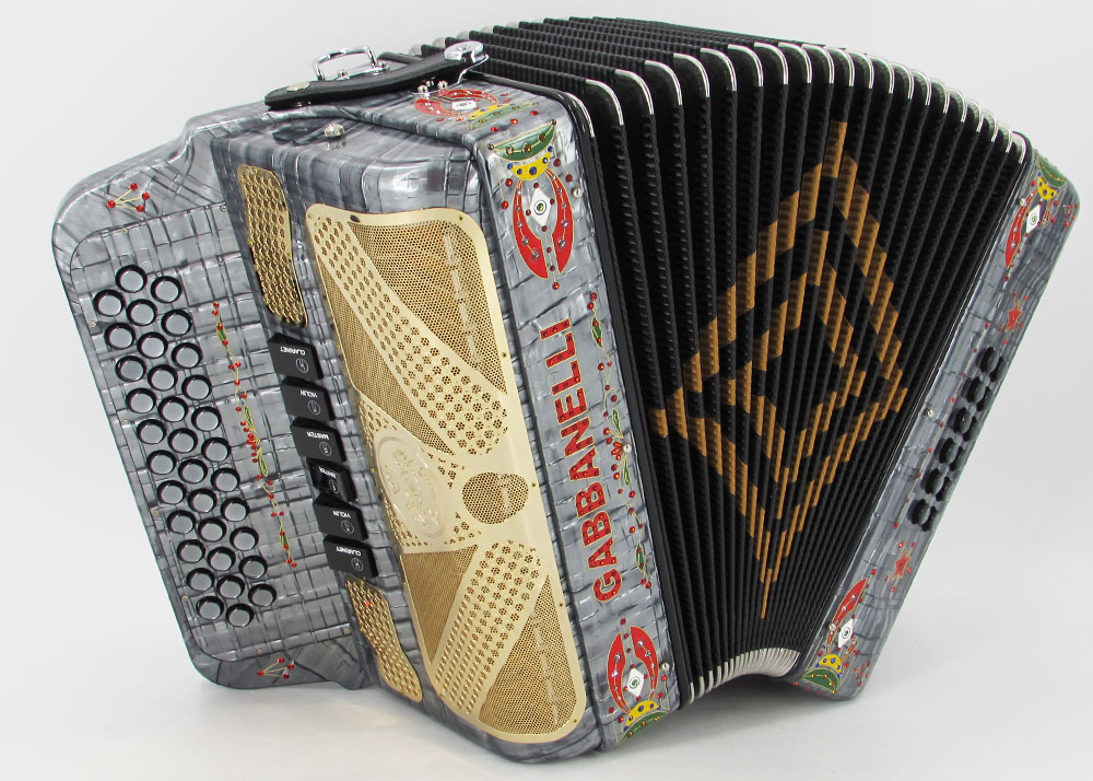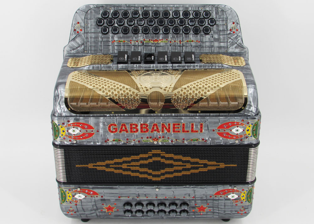 Pioneered by Gabbanelli accordions, the Gabbanelli 2 Tone accordion is like having two accordions in one. This Gabbanelli accordion is one of the most preferred for its versatility in changing keys at the touch of a register. Our current accordions are the finest instruments available and are a product of our expertise coupled with a continued collaboration since 1961 with our accordionist. Our mission is to serve the ever-changing needs and demands of our musicians. This masterpiece is the product of Gabbanellis decades of developments alongside only highly trained Italian artisans whom meet our standards of excellence. Model 2Tone-34 Buttons-two tones in one, 3 sound registers each tone. Complete with case, straps and warranty.