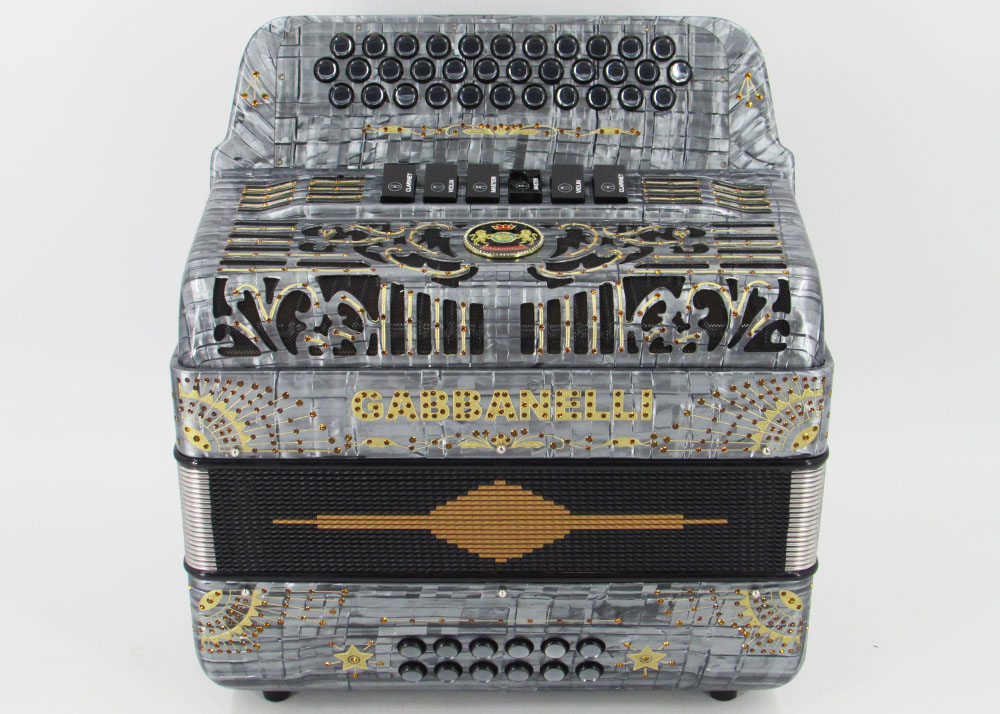 Pioneered by Gabbanelli accordions, the Gabbanelli 2 Tone accordion is like having two accordions in one. This Gabbanelli accordion is one of the most preferred for its versatility in changing keys at the touch of a register. Our current accordions are the finest instruments available and are a product of our expertise coupled with a continued collaboration since 1961 with our accordionist. Our mission is to serve the ever-changing needs and demands of our musicians. This masterpiece is the product of Gabbanelli’s decades of developments alongside only highly trained Italian artisans whom meet our standards of excellence. Model 2Tone-34 Buttons-two tones in one, 3 sound registers each tone. Complete with case, straps and warranty.