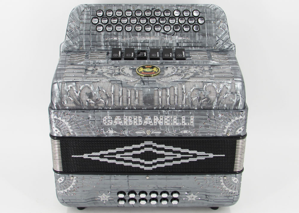 Pioneered by Gabbanelli accordions, the Gabbanelli 2 Tone accordion is like having two accordions in one. This Gabbanelli accordion is one of the most preferred for its versatility in changing keys at the touch of a register. Our current accordions are the finest instruments available and are a product of our expertise coupled with a continued collaboration since 1961 with our accordionist. Our mission is to serve the ever-changing needs and demands of our musicians. This masterpiece is the product of Gabbanellis decades of developments alongside only highly trained Italian artisans whom meet our standards of excellence. Model 2Tone-34 Buttons-two tones in one, 3 sound registers each tone. Complete with case, straps and warranty.
