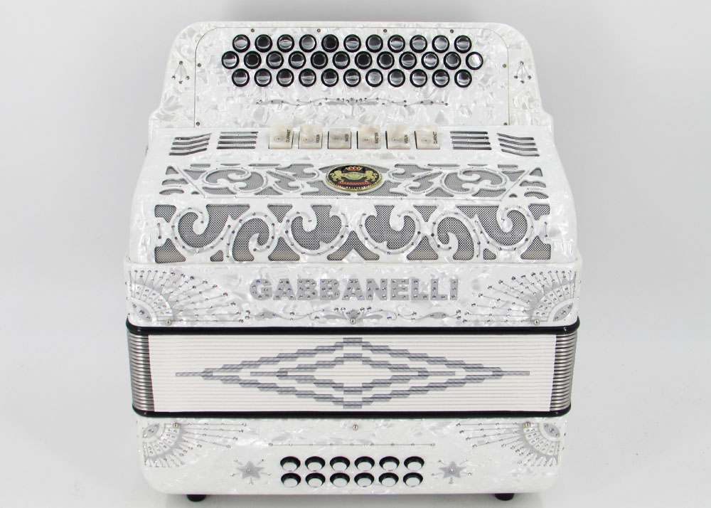 Pioneered by Gabbanelli accordions, the Gabbanelli 2 Tone accordion is like having two accordions in one. This Gabbanelli accordion is one of the most preferred for its versatility in changing keys at the touch of a register. Our current accordions are the finest instruments available and are a product of our expertise coupled with a continued collaboration since 1961 with our accordionist. Our mission is to serve the ever-changing needs and demands of our musicians. This masterpiece is the product of Gabbanellis decades of developments alongside only highly trained Italian artisans whom meet our standards of excellence. Model 2Tone-34 Buttons-two tones in one, 3 sound registers each tone. Complete with case, straps and warranty.