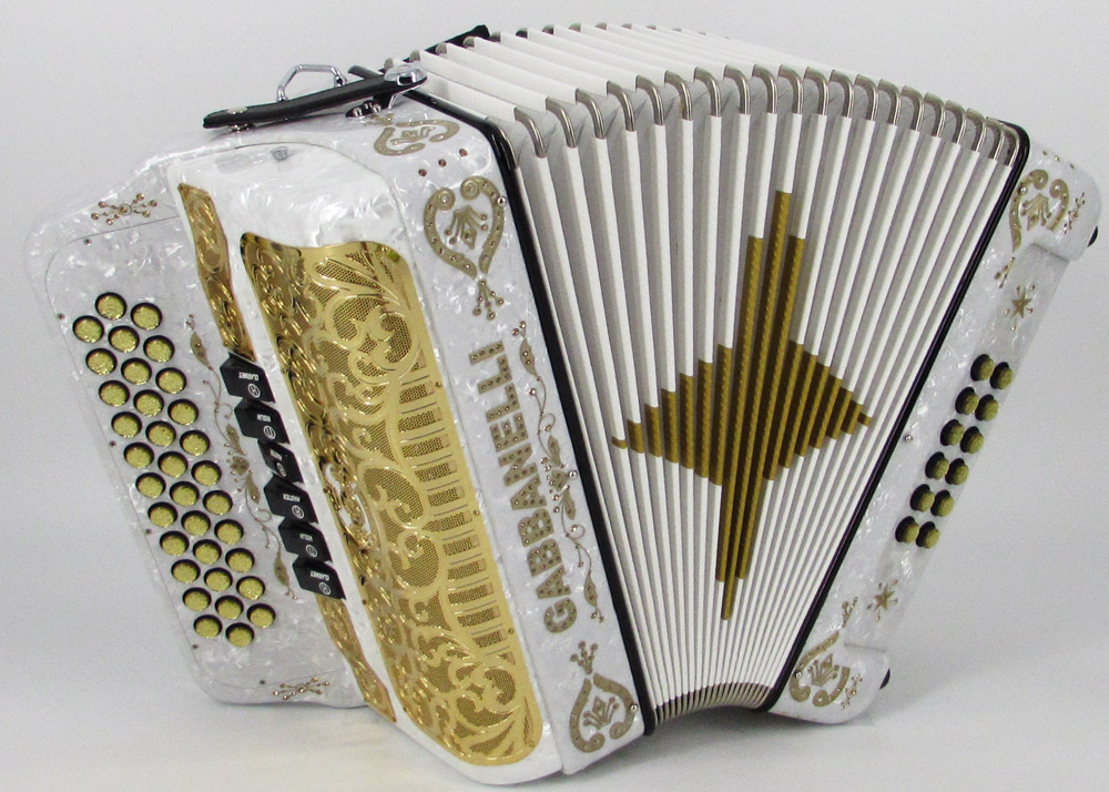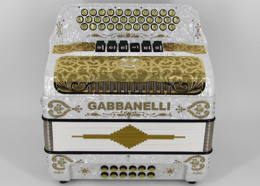 Pioneered by Gabbanelli accordions, the Gabbanelli 2 Tone accordion is like having two accordions in one. This Gabbanelli accordion is one of the most preferred for its versatility in changing keys at the touch of a register. Our current accordions are the finest instruments available and are a product of our expertise coupled with a continued collaboration since 1961 with our accordionist. Our mission is to serve the ever-changing needs and demands of our musicians. This masterpiece is the product of Gabbanelli’s decades of developments alongside only highly trained Italian artisans whom meet our standards of excellence. Model 2Tone-34 Buttons-two tones in one, 3 sound registers each tone. Complete with case, straps and warranty.