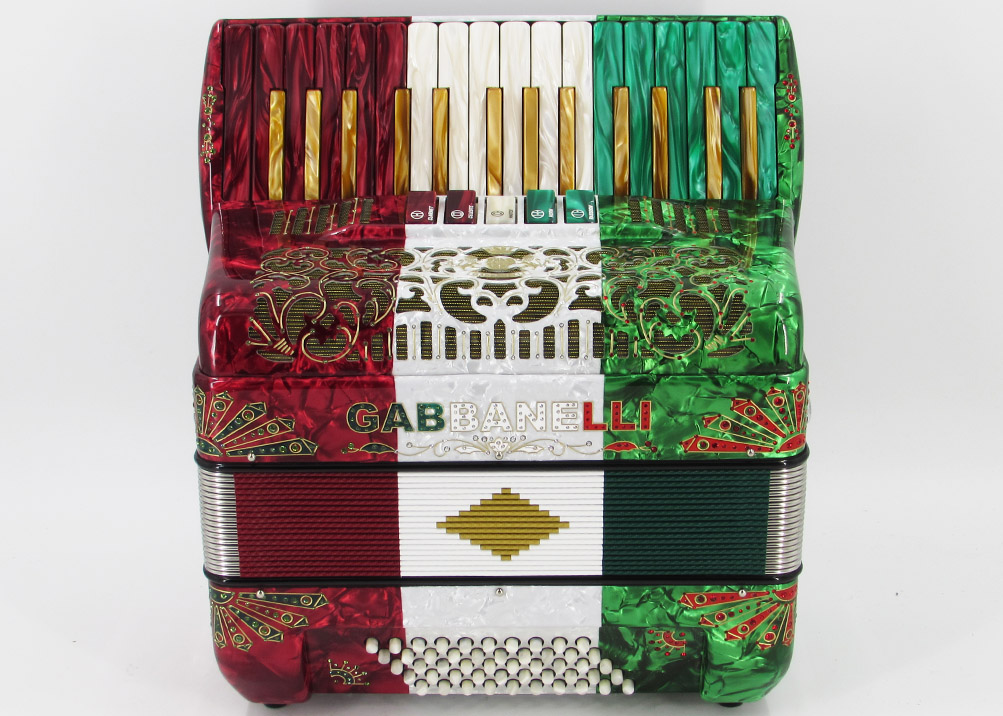 First key G. 30 handmade keys this Gabbanelli piano accordion offers 5 sound registers, and boasts the highest quality materials and craftsmanship. Gabbanelli accordions are created from classic Italian artisan’s techniques to produce the finest quality instrument that will last for years to come. Complete with case, straps and warranty. Popular professional choice for its compact size and strong sound. Model 305- 30 keys accordion with 5 switches, first key G.