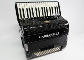 First key G. 30 handmade keys this Gabbanelli piano accordion offers 5 sound registers, and boasts the highest quality materials and craftsmanship. Gabbanelli accordions are created from classic Italian artisan’s techniques to produce the finest quality instrument that will last for years to come. Complete with case, straps and warranty. Popular professional choice for its compact size and strong sound. Model 305- 30 keys accordion with 5 switches, first key G.
