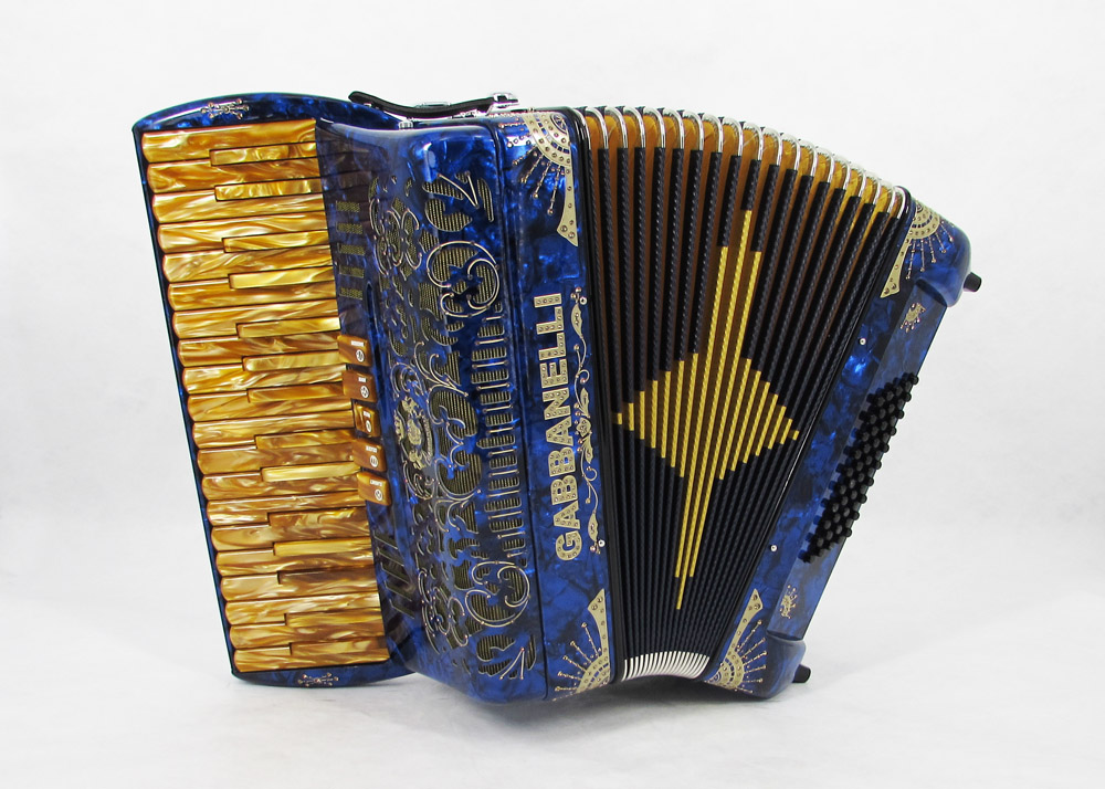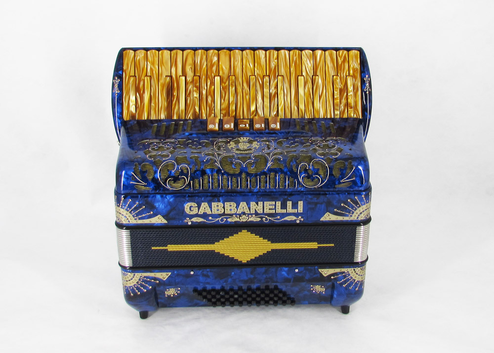 First note G. This Gabbanelli piano-accordion features 34 keys for more range in note selection and 5 registers for full loud sound. It boasts Gabbanelli´s handmade, high-quality materials and craftsmanship. Our current accordions are the finest instruments available and are a product of our expertise coupled with a continued collaboration since 1961 with our accordionist. Our mission is to serve the ever-changing needs and demands of our musicians. This masterpiece is the product of Gabbanelli’s decades of developments alongside only highly trained Italian artisans whom meet our standards of excellence. Complete with case, straps and warranty. Model 34- 34 Keys, 50 Bass buttons, 5 sound registers, and 3 reeds in Master first note in G. Popular professional choice.