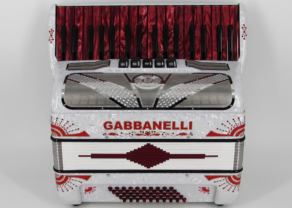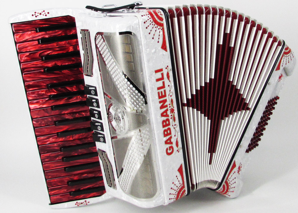 First note G. This Gabbanelli piano-accordion features 34 keys for more range in note selection and 5 registers for full loud sound. It boasts Gabbanelli´s handmade, high-quality materials and craftsmanship. Our current accordions are the finest instruments available and are a product of our expertise coupled with a continued collaboration since 1961 with our accordionist. Our mission is to serve the ever-changing needs and demands of our musicians. This masterpiece is the product of Gabbanelli’s decades of developments alongside only highly trained Italian artisans whom meet our standards of excellence. Complete with case, straps and warranty. Model 34- 34 Keys, 50 Bass buttons, 5 sound registers, and 3 reeds in Master first note in G. Popular professional choice.