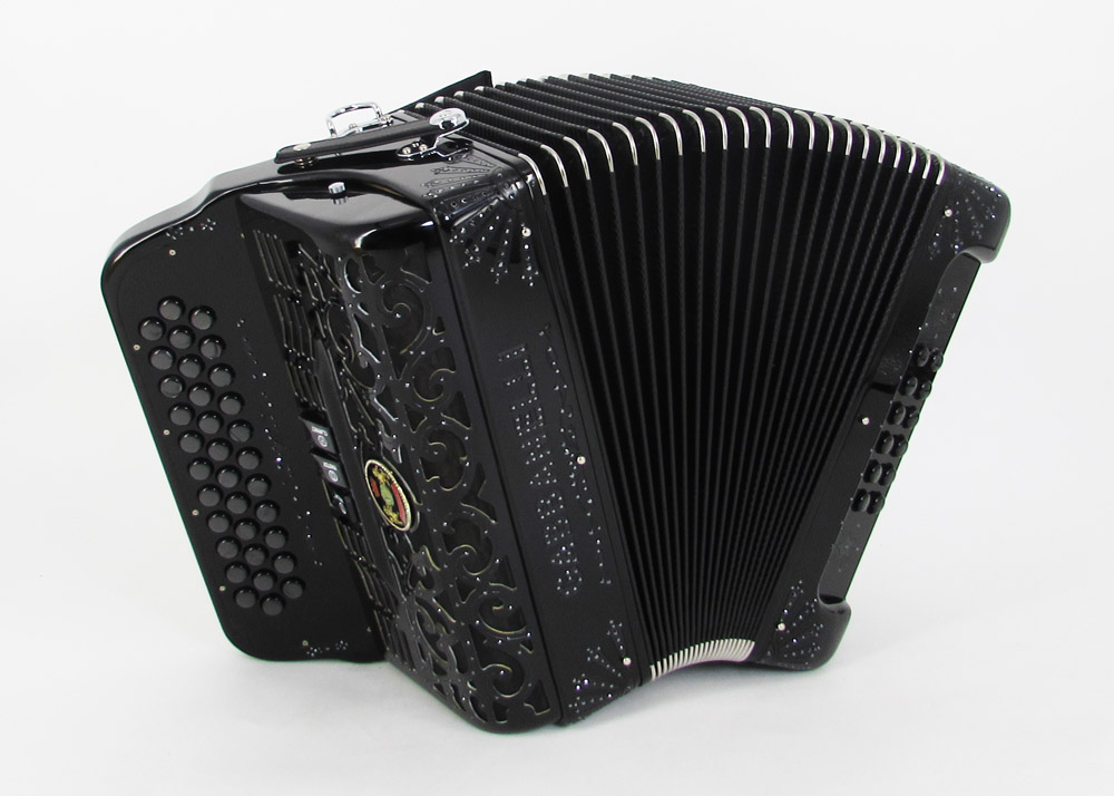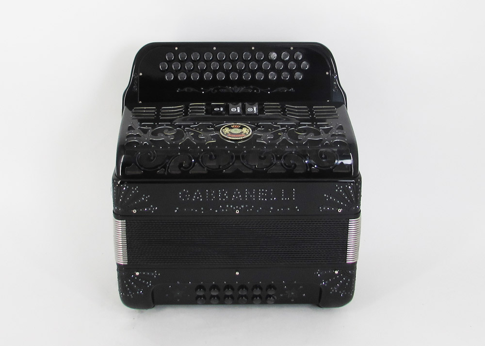 Gabbanelli Accordion’s classic full-size accordion with three sound registers and 34 buttons. 12 bass buttons with bass reeds available upon request. Excellent sound and tuning suitable for all types of music the Gabbanelli accordion is an artisanal handcrafted instrument made in Italy from the highest quality materials. Gabbanelli Model 350- Original Size – 3 sound registers. Complete with case, straps and warranty.