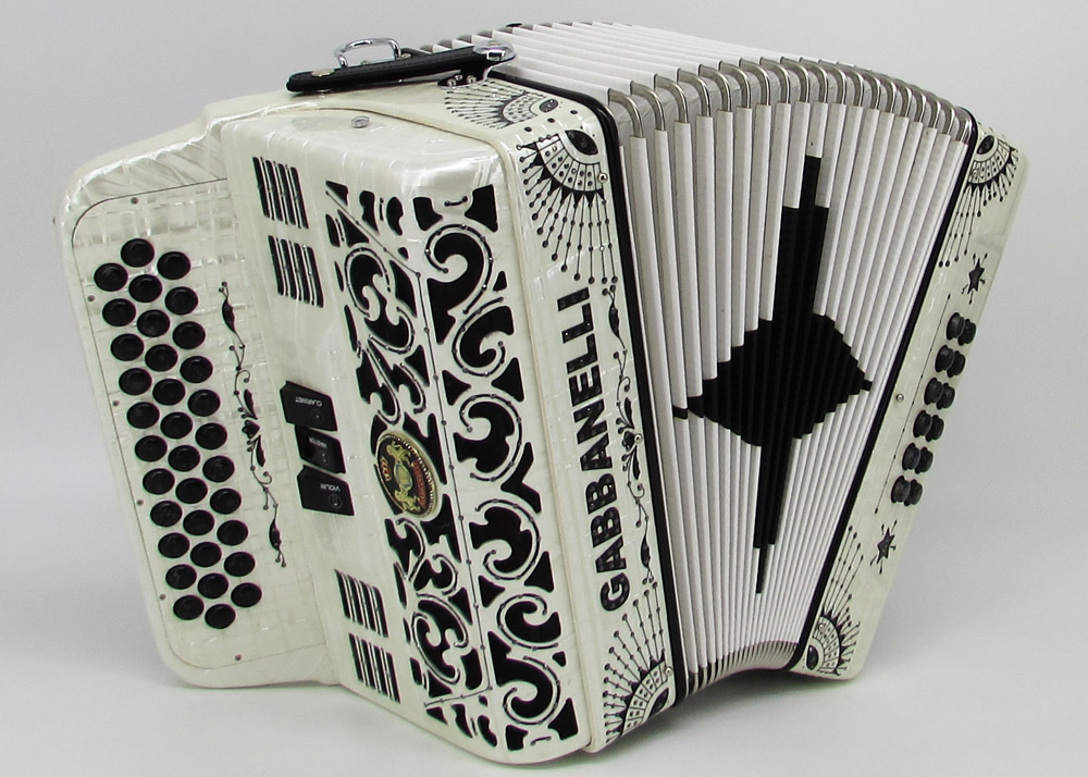 Gabbanelli Accordion’s classic full-size accordion with three sound registers and 34 buttons. 12 bass buttons with bass reeds available upon request. Excellent sound and tuning suitable for all types of music the Gabbanelli accordion is an artisanal handcrafted instrument made in Italy from the highest quality materials. Gabbanelli Model 350- Original Size – 3 sound registers. Complete with case, straps and warranty.