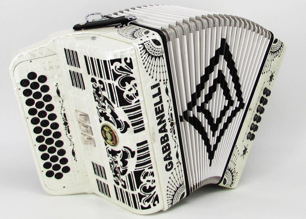 Gabbanelli Accordion’s classic full-size accordion with three sound registers and 34 buttons. 12 bass buttons with bass reeds available upon request. Excellent sound and tuning suitable for all types of music the Gabbanelli accordion is an artisanal handcrafted instrument made in Italy from the highest quality materials. Gabbanelli Model 350- Original Size – 3 sound registers. Complete with case, straps and warranty.