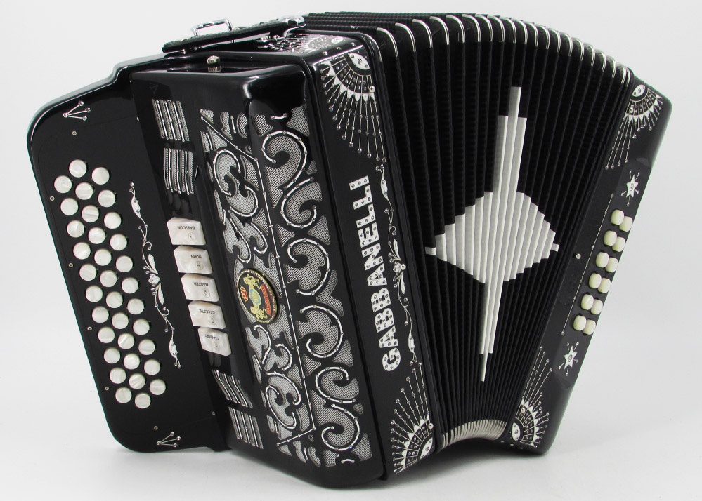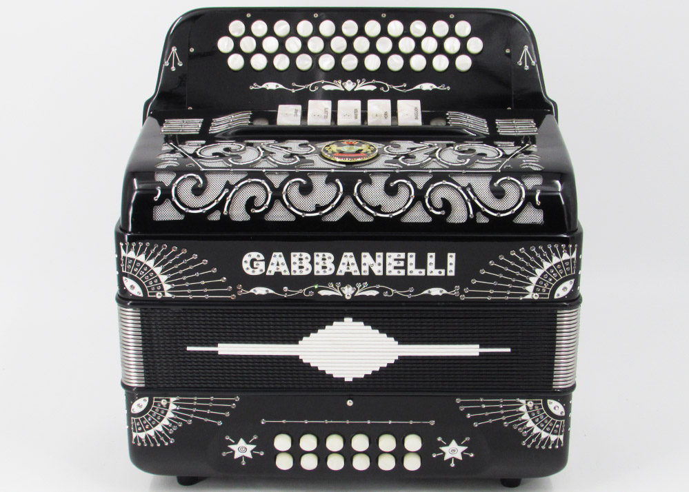 Gabbanelli Accordion in original large size 5 register. It produces deep full sound with 5 different sound effect changes, and is handcrafted from the highest quality materials, featuring the best quality reeds. This accordion is the finest instrument available and is a product of Gabbanelli Accordions’ technical and design expertise, coupled with a continued collaboration since 1961 with our accordionists evolving needs. This accordion masterpiece is the product of Gabbanelli Accordions’ decades of developments alongside only highly trained Italian artisans whom are selected to meet our standards of excellence. The Gabbanelli Model 400-34 Buttons – 5 sound registers is complete with case, straps and warranty. Bass reed blocks are available upon special request and surcharge.