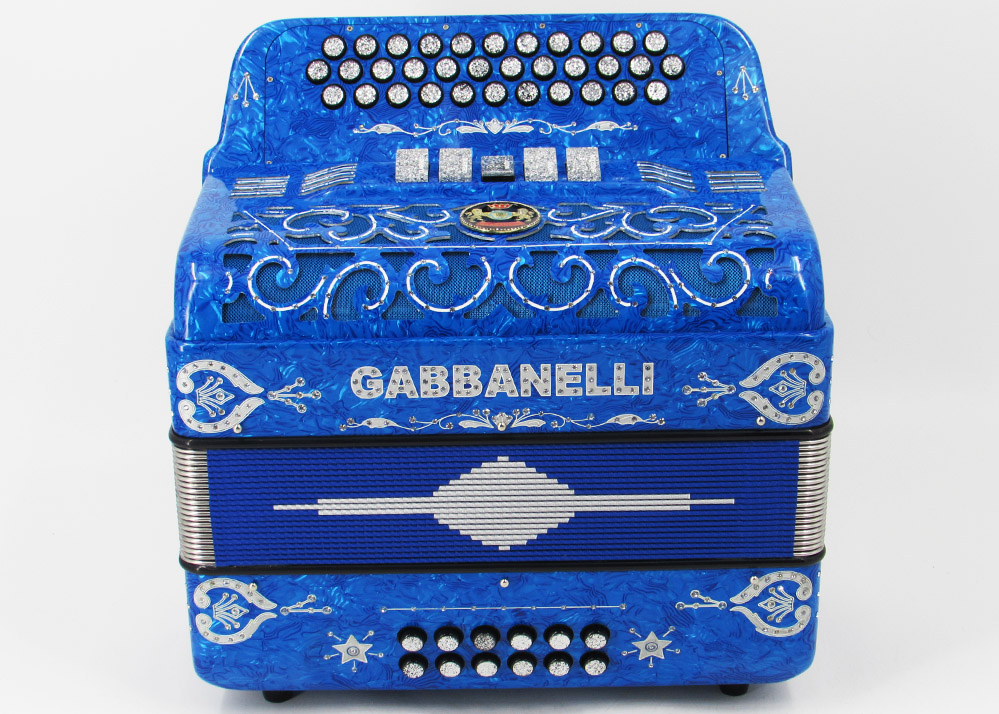 Gabbanelli Accordion in original large size 5 register. It produces deep full sound with 5 different sound effect changes, and is handcrafted from the highest quality materials, featuring the best quality reeds. This accordion is the finest instrument available and is a product of Gabbanelli Accordions’ technical and design expertise, coupled with a continued collaboration since 1961 with our accordionists evolving needs. This accordion masterpiece is the product of Gabbanelli Accordions’ decades of developments alongside only highly trained Italian artisans whom are selected to meet our standards of excellence. The Gabbanelli Model 400-34 Buttons – 5 sound registers is complete with case, straps and warranty. Bass reed blocks are available upon special request and surcharge.