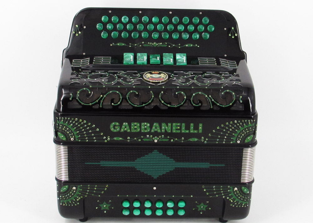 Gabbanelli Accordion in original large size 5 register. It produces deep full sound with 5 different sound effect changes, and is handcrafted from the highest quality materials, featuring the best quality reeds. This accordion is the finest instrument available and is a product of Gabbanelli Accordions’ technical and design expertise, coupled with a continued collaboration since 1961 with our accordionists evolving needs. This accordion masterpiece is the product of Gabbanelli Accordions’ decades of developments alongside only highly trained Italian artisans whom are selected to meet our standards of excellence. The Gabbanelli Model 400-34 Buttons – 5 sound registers is complete with case, straps and warranty. Bass reed blocks are available upon special request and surcharge.