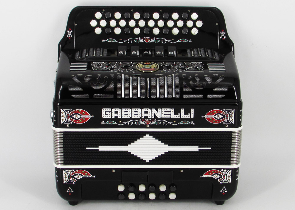 Gabbanelli Accordion in original large size 5 register. It produces deep full sound with 5 different sound effect changes, and is handcrafted from the highest quality materials, featuring the best quality reeds. This accordion is the finest instrument available and is a product of Gabbanelli Accordions technical and design expertise, coupled with a continued collaboration since 1961 with our accordionists evolving needs. This accordion masterpiece is the product of Gabbanelli Accordions decades of developments alongside only highly trained Italian artisans whom are selected to meet our standards of excellence. The Gabbanelli Model 400-34 Buttons 5 sound registers is complete with case, straps and warranty. Bass reed blocks are available upon special request and surcharge.